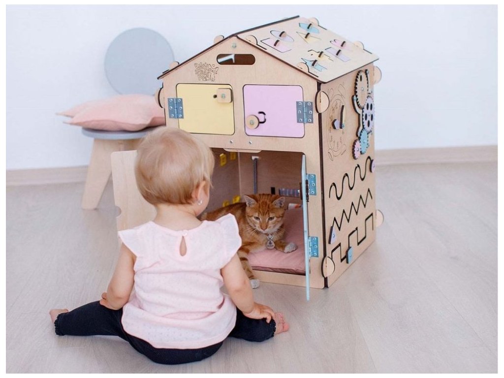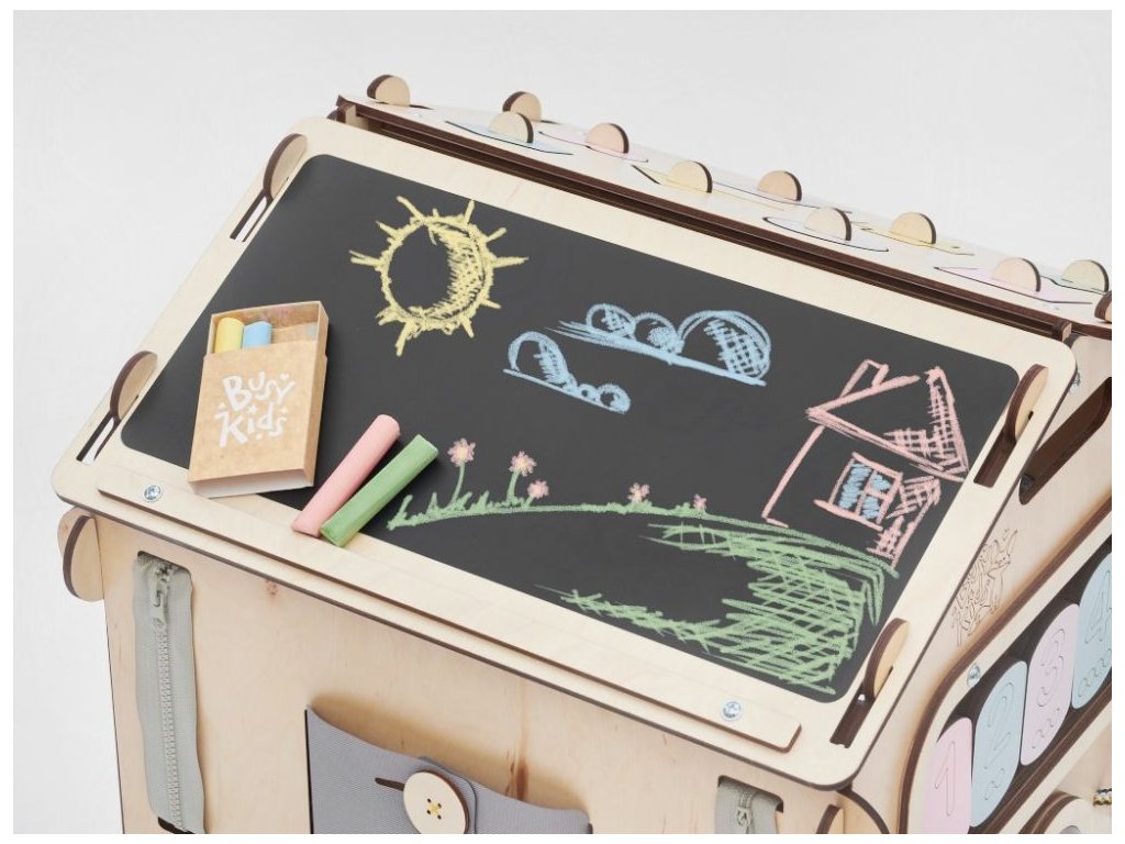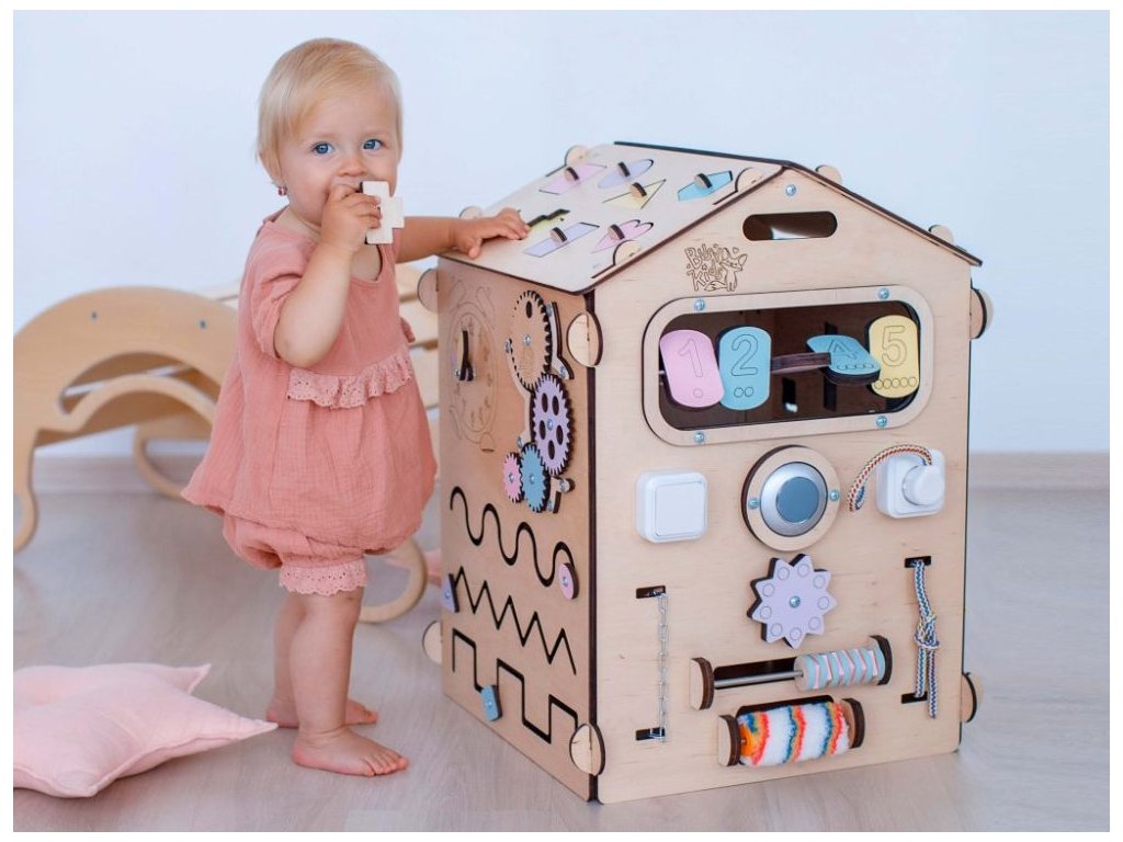 Umožňuje deťom všestranne sa rozvíjať vďaka svojej prirodzenej zvedavosti. Domček je zložený zo 6 dosiek s prvkami zameranými na zručnosť, logiku, trpezlivosť a kreativitu. Dokáže dokonale vtiahnuť do sveta objavovania a deti sa stanú samé sebe najlepšími učiteľmi.