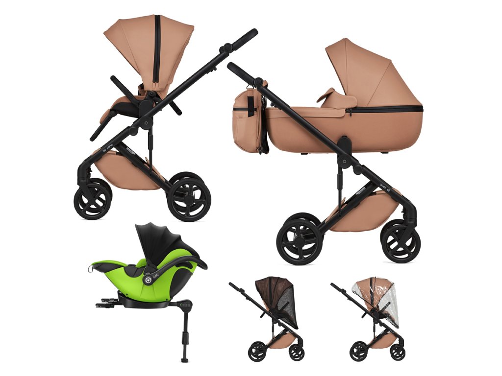 Obsahuje: vaničku, športovú časť, zvyšovacie adaptéry, elegantný batoh, pláštenku, moskytiéru, madlo. Súčasťou kočíka je tiež autosedačka Kiddy Evoluna i-size 2 spolu s isofix základňou.
