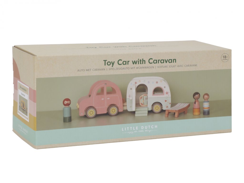 Rozkošné ružové auto s karavanom v kvalitnom drevenom prevedení dovezie celú rodinku za prázdninovým dobrodružstvom. Karavan má odnímateľnú strechu a otváracie dvere, aby bolo možné rodinku aj vybavenie dovnútra ľahko umiestniť.