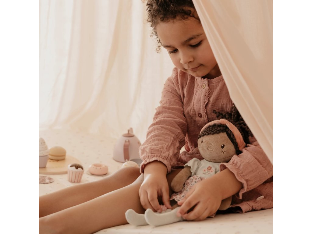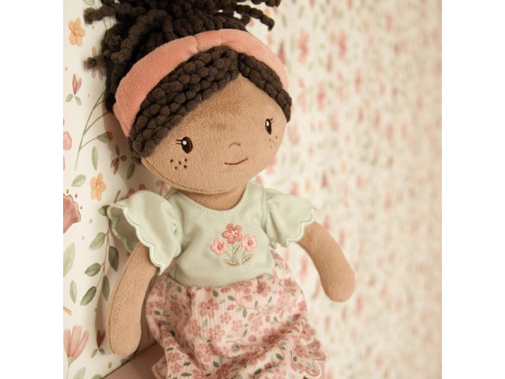 Nežná plyšová bábika Evi z mäkkého jemného materiálu je oblečená do krásnych kvetovaných šiat. Je vhodná na hranie aj maznanie a bude sa s ňou aj krásne zaspávať!