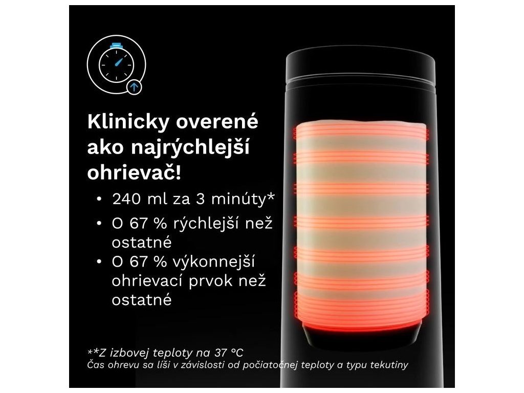 - Technológia obsahuje senzor, ktorý zabezpečuje rovnomerné ohrievanie odhora nadol, čím chráni dôležité živiny v materskom mlieku. LED displej zobrazuje teplotu v reálnom čase.