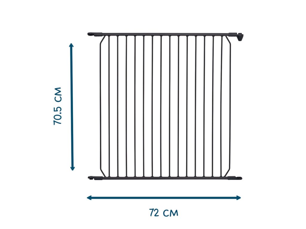 Keď k bezpečnostnej zabráni BabyDan CombiFit alebo BabyDan Carl pridáte predĺženie BabyDan 72cm, môžete ľahko zabezpečiť široké a nepravidelné schodisko, dvere alebo krb, prípadne zábránu použiť na rozdelenie miestnosti. Môžete pridať toľko predĺžení, koľko potrebujete, a každé predĺženie je možné ľubovoľne umiestniť v konfigurácii bezpečnostnej zábrány.