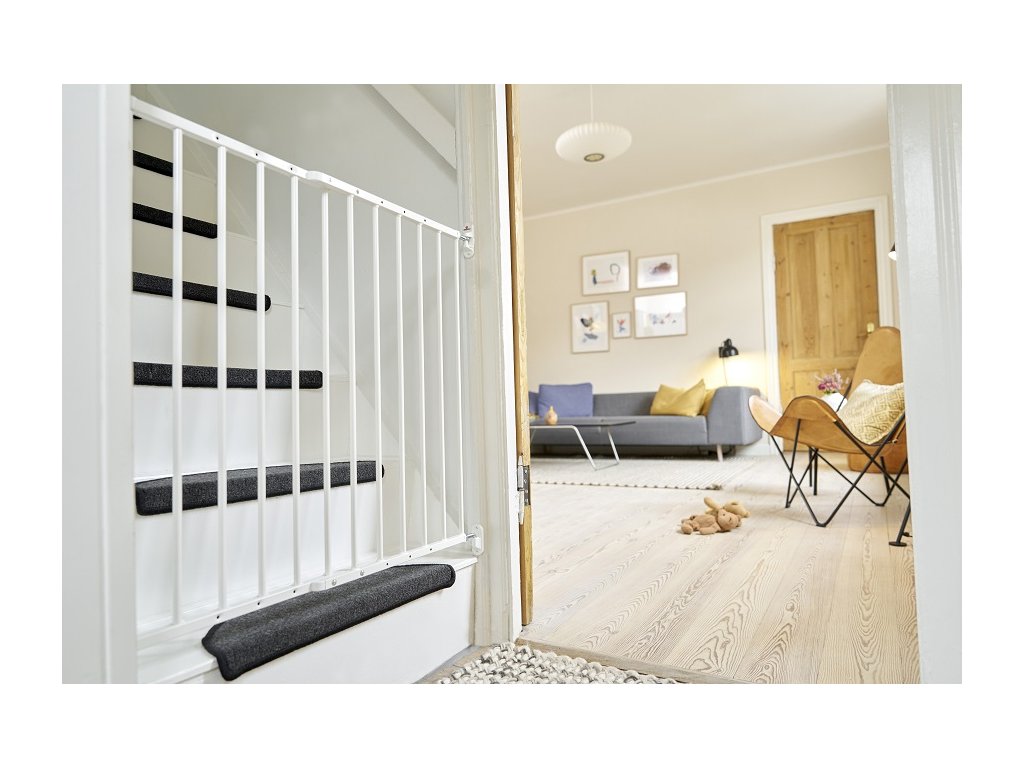 Skrutkovacia kovová otvorová bezpečnostná zábrana od BabyDanu, svetového odborníka na bezpečnosť detí, vyrobená v bielom laku s bielym kovaním. Svojou nastaviteľnou dĺžkou sa prispôsobí takmer každým dverám v byte.