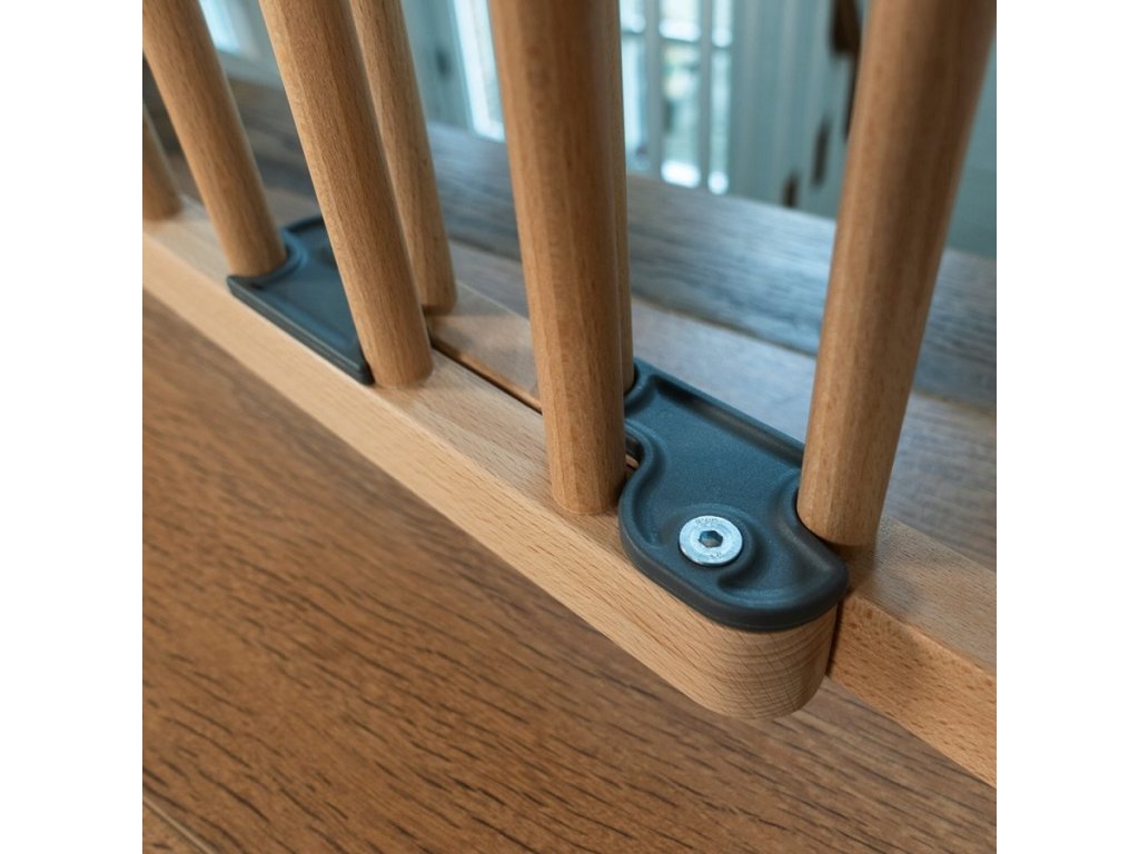 Otočné držiaky umožňujú montáž schodiskového roštu aj pod šikmým uhlom - ľahké prispôsobenie krivým stenám. Zábrana je vysoká 80,5 cm a poskytuje robustnú ochranu, zatiaľ čo intuitívny jednoručný mechanizmus uľahčuje prístup aj dospelým, takže deti sú pri preskúmavaní v bezpečí. Nastaviteľná konštrukcia umožňuje, aby sa schodisková zábrana zmestila do akéhokoľvek otvoru so šírkou medzi 70,5-110 cm pri montáži vo vnútri otvoru/zárubne a 65,5-102 cm pri montáži na/mimo rám otvoru/dvere. Konštrukcia tejto schodiskovej zábrany zohľadňuje aj soklové lišty. Nie je tu teda potrebné riešenie pre domácich majstrov. So schodiskovou zábranou BabyDan AdjustPro máte voľný priechod, pretože zábrana nemá v spodnej časti žiadne lišty, o ktoré by ste mohli zakopnúť. Táto konštrukcia z nej tiež robí obzvlášť bezpečnú bezpečnostnú bránu pre hornú časť schodiska. V neposlednom rade sa táto schodisková brána dodáva s nožičkami pod dverami pre extra stabilitu, keď sú otvorené. V dolnej časti nie je potrebné zábranu prekračovať. Zodpovedá najnovšej norme EN1930:2011. Made in Denmark. Hmotnosť: 4 kg. Rozmery: 81x110x5 cm.