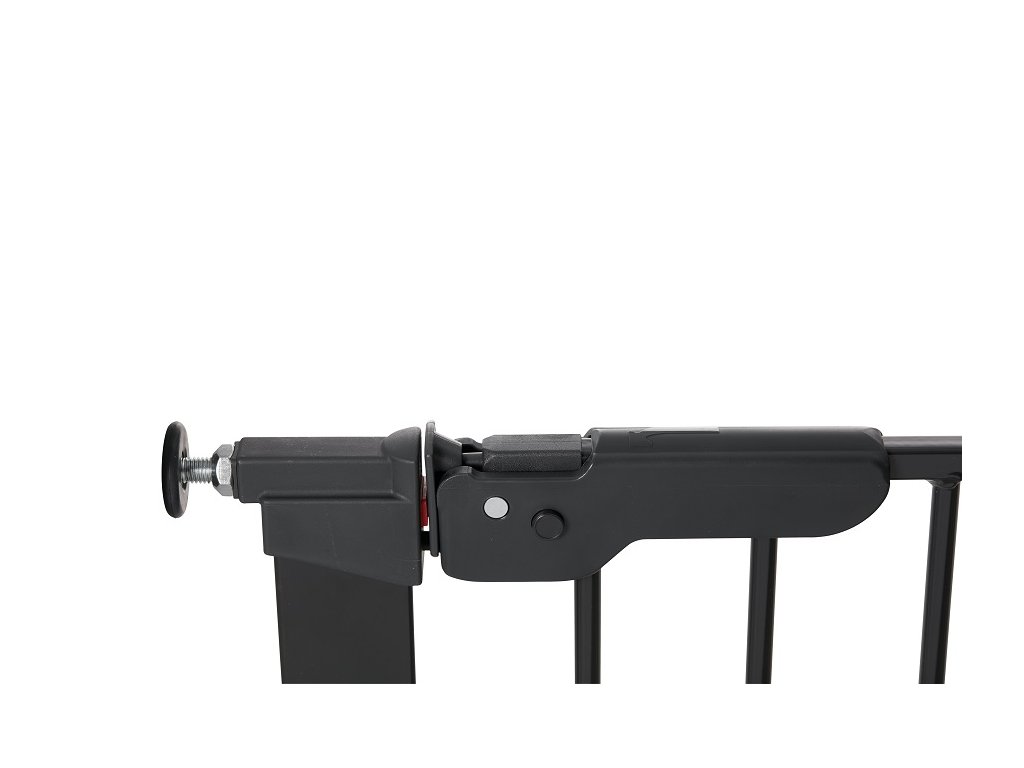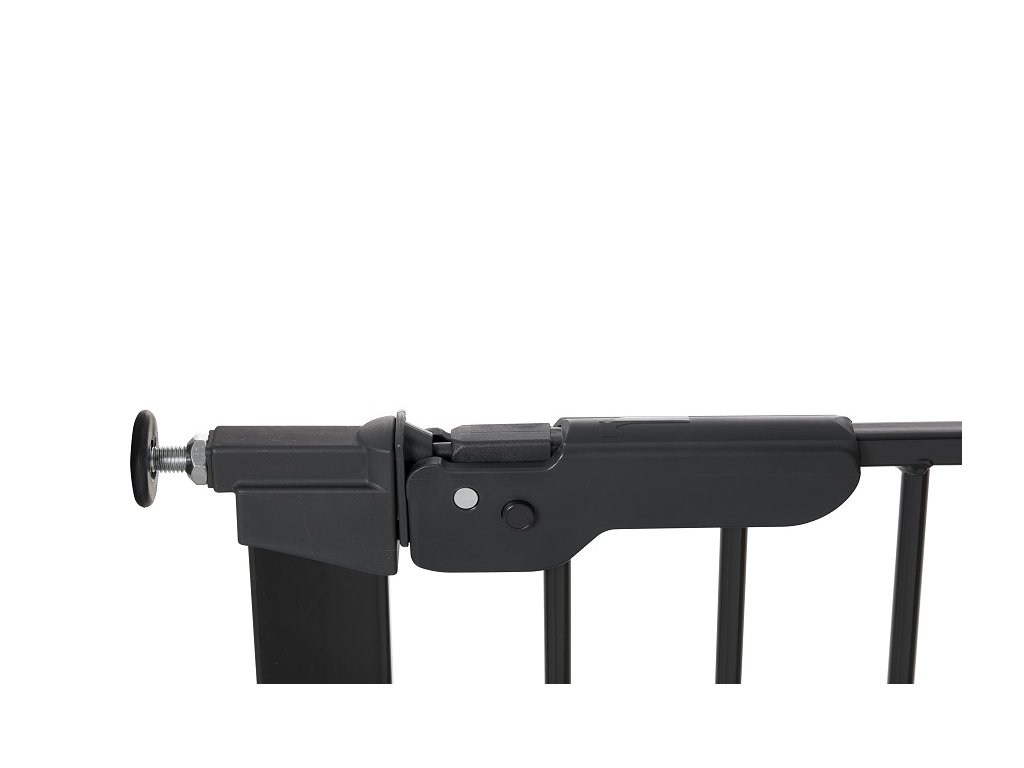 Táto bezpečnostná zábrana BabyDan Premier v čiernej farbe je ideálna pre extra široké dvere, chodby a vstupné priestory v domácnosti od 145,5 a 151,7 cm . Zábrana sa upevňuje tlakovo, takže sa vyhnete vŕtaniu otvorov do steny. Namiesto toho môžete použiť iba dodané nástenné úchyty s páskou. Bezpečnostná zábrana sa veľmi ľahko zostavuje a nastavuje a všetko potrebné náradie je súčasťou balenia. Môžete tiež použiť našu aplikáciu Onbox, ktorá ukazuje inštaláciu mriežky krok za krokom.