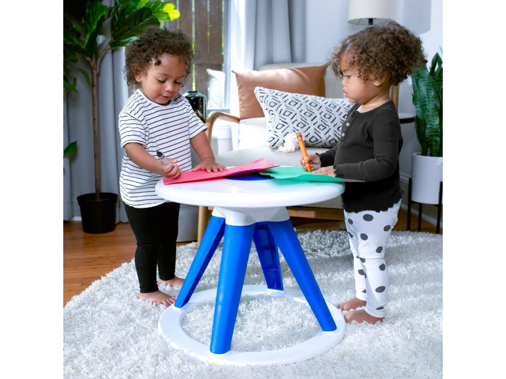 - Chodítko na sedenie má 3 výškové nastavenia pre dokonalé prispôsobenie sa dieťatku a pohybuje sa v rozsahu 360 stupňov okolo stola, pričom zostáva na mieste; dostatočne veľký stôl určený aj na spoločné hranie pre viac detí