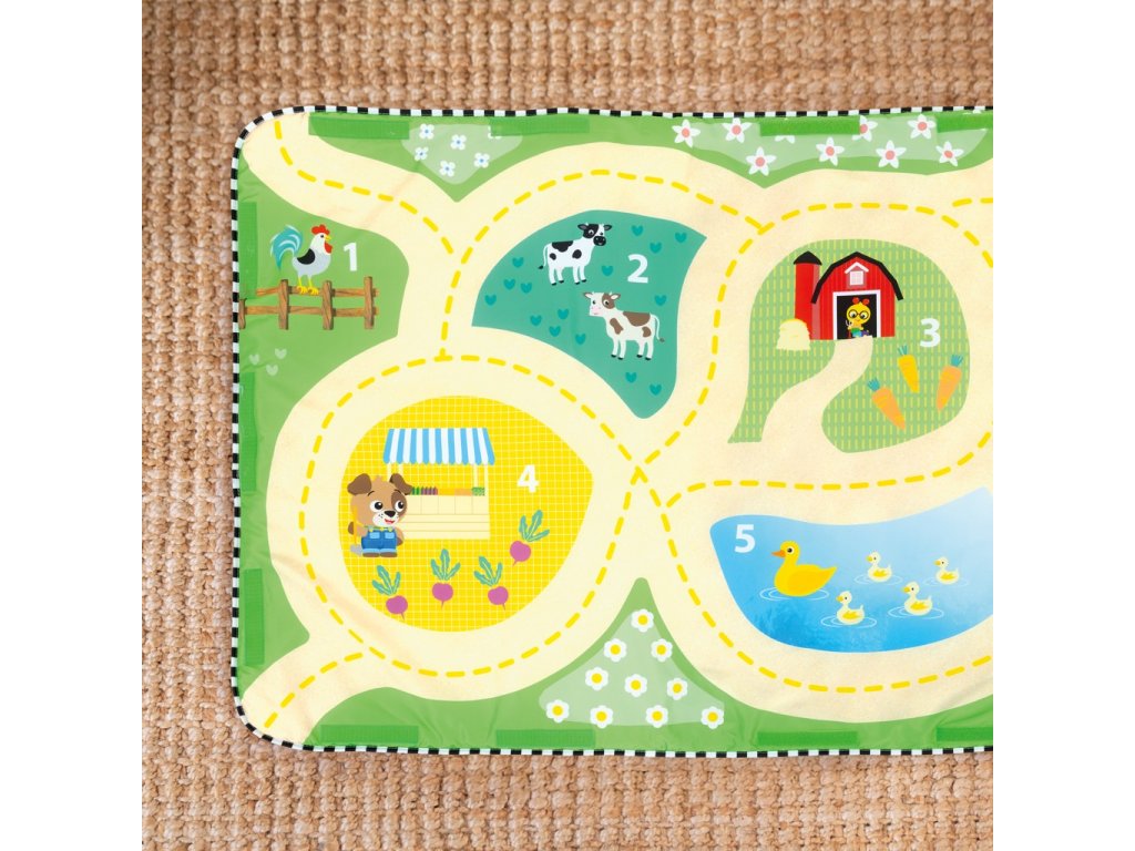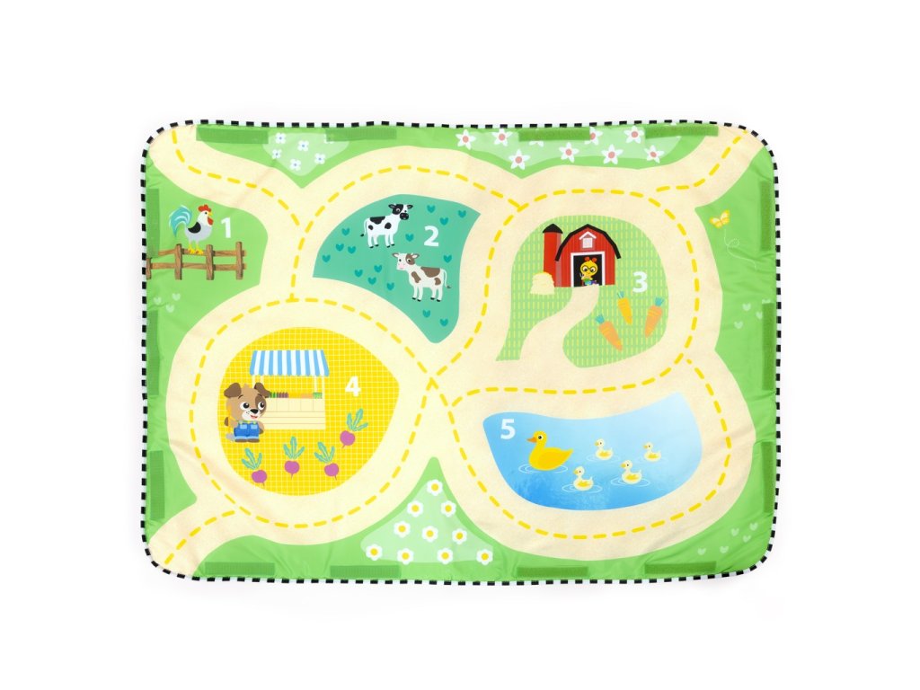 - 4 herné režimy: čas na brušku, hracia deka s hrazdičkou, farma so zábavným triedením tvarov, cesta pre autíčka