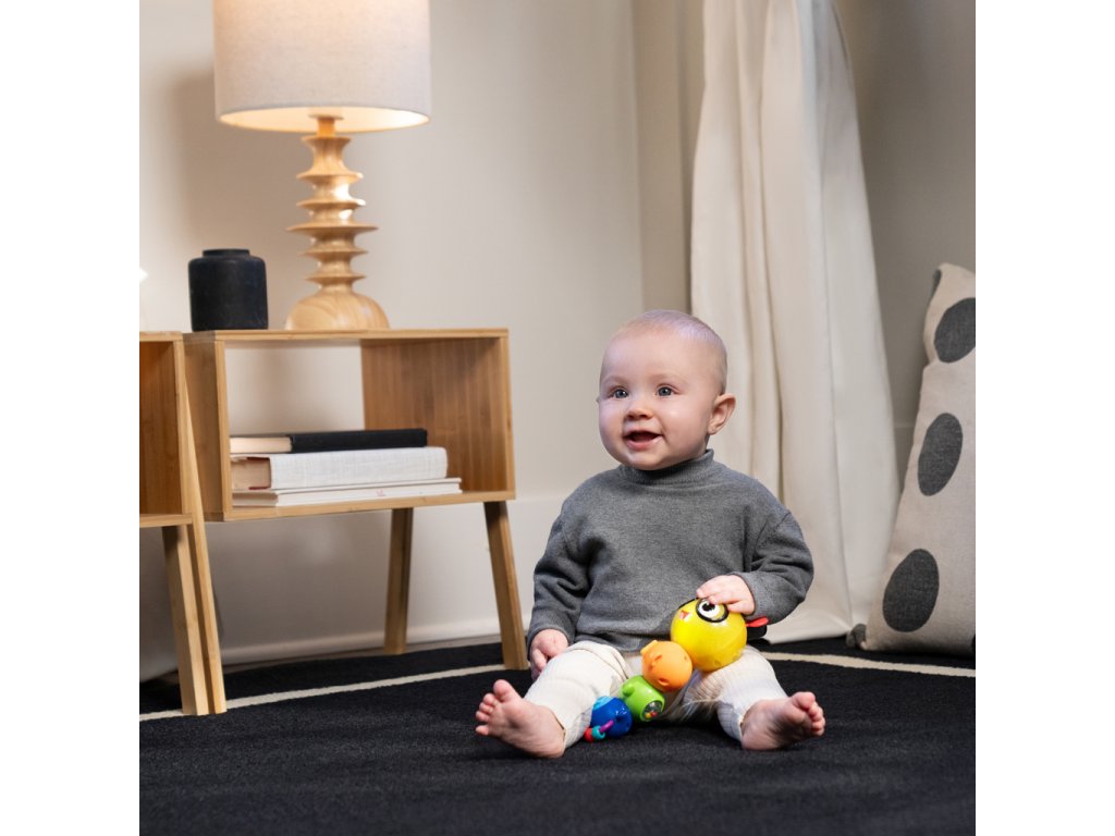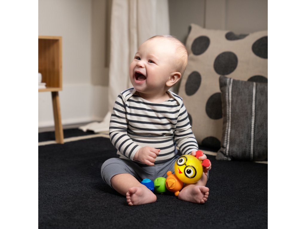 - Senzorická hračka Baby Einstein Twist-a-Pal Cal učí jemnú motoriku a princíp príčiny a následku, keď dieťa otáča každý segment a objavuje hudbu, svetlá a rôzne textúry.