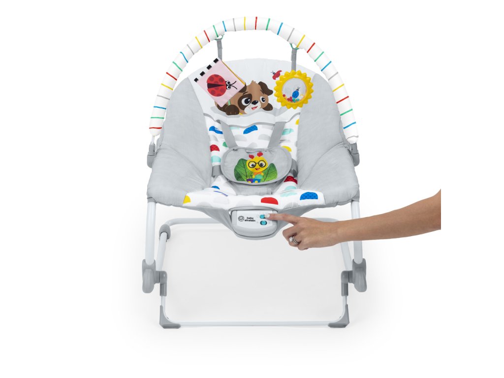 - 2 režimy: Aktivujte stojan pre použitie ako stabilné sedadlo pre bábätko; deaktivujte stojan a jemne hojdajte sedadlo na upokojenie dieťaťa alebo použite ako hojdačku pre batoľa; nevhodné na spánok
