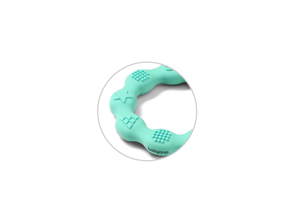 Pružný a mäkký materiál rozmanitej textúry jemne masíruje ďasná bábätka.
