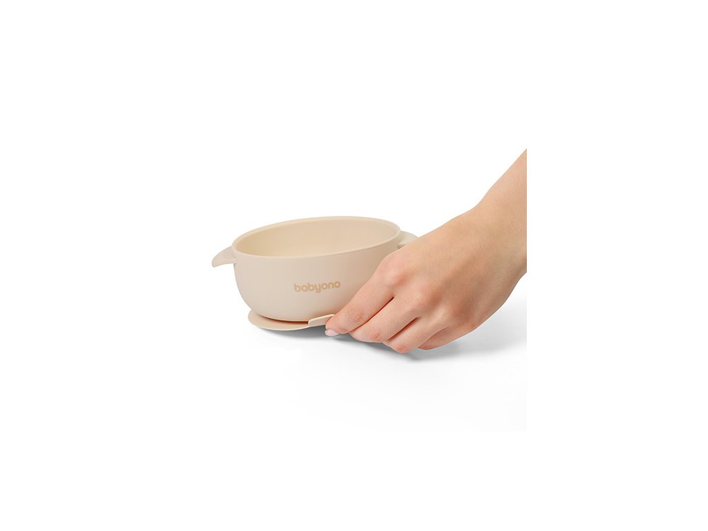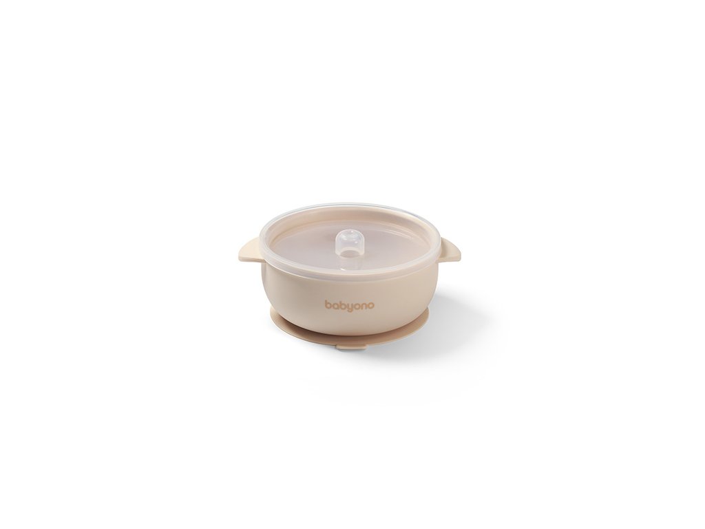 BABYONO Miska silikónová s prísavkou a viečkom béžová 6m+