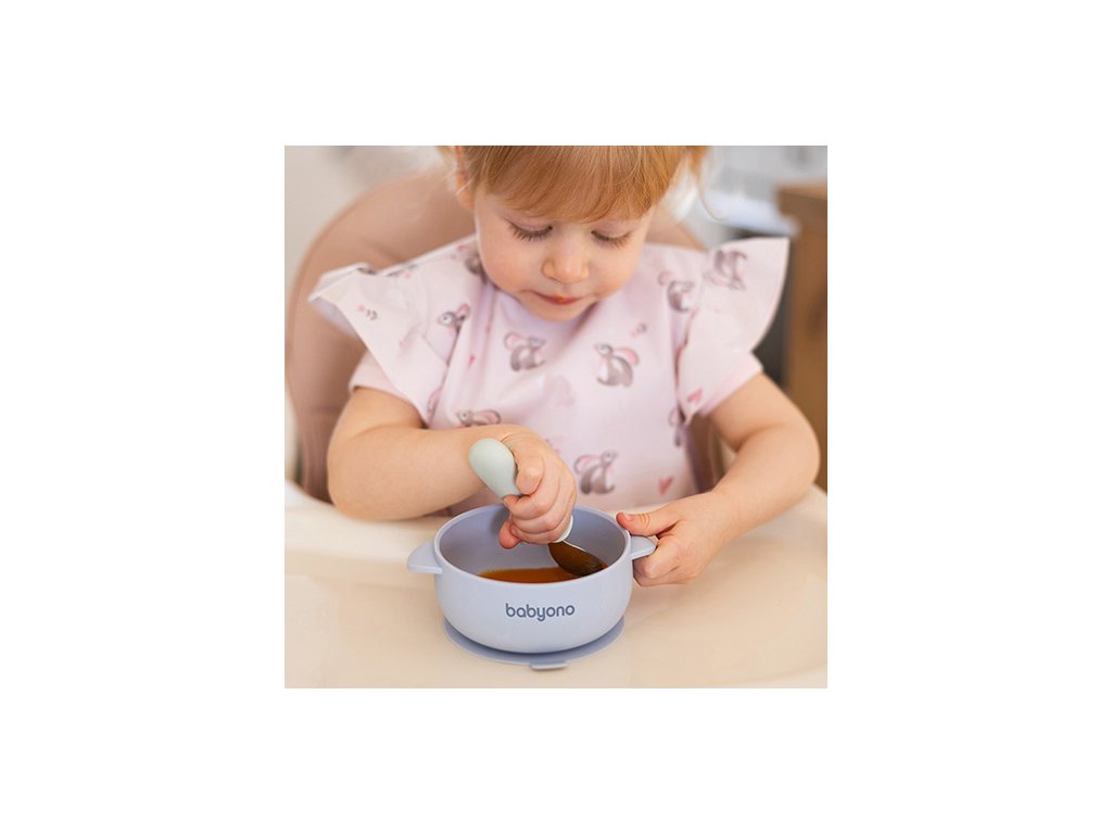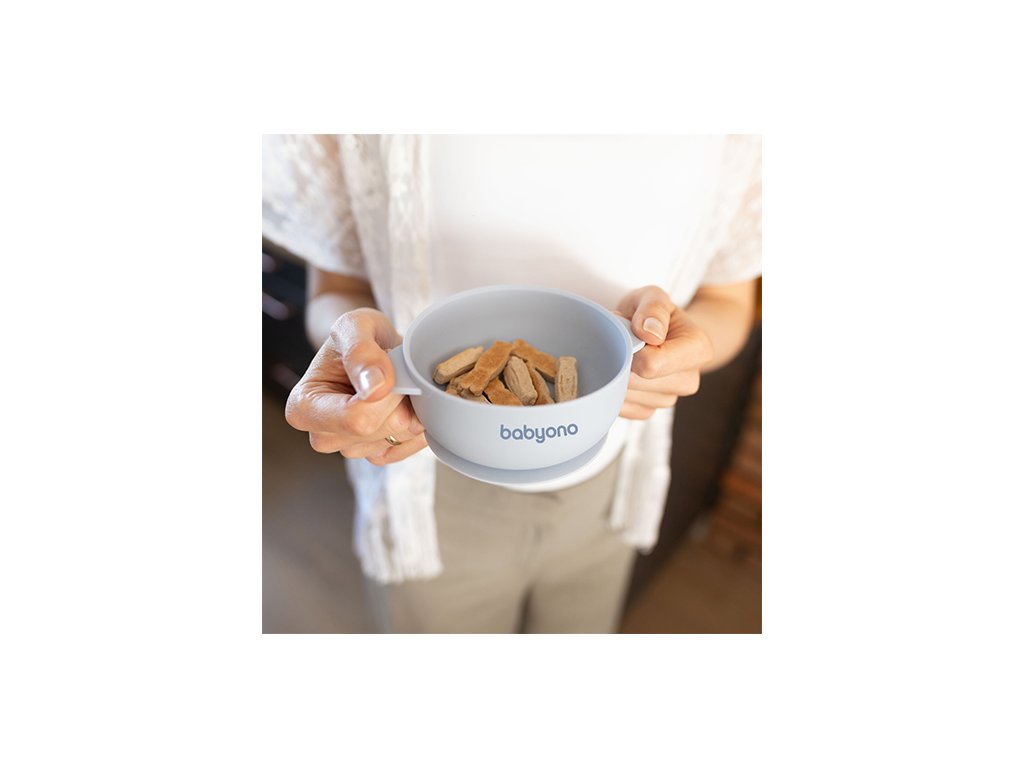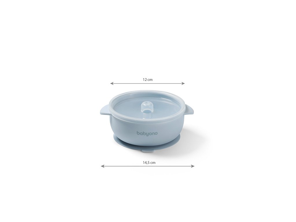 BABYONO Miska silikónová s prísavkou a viečkom modrá 6m+