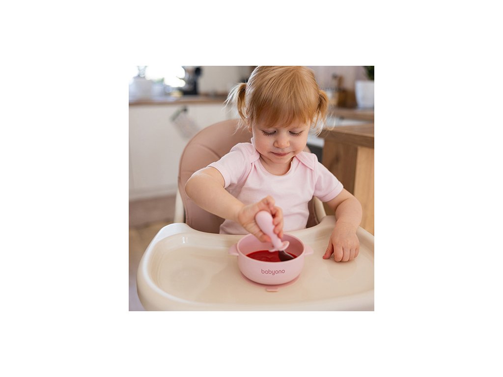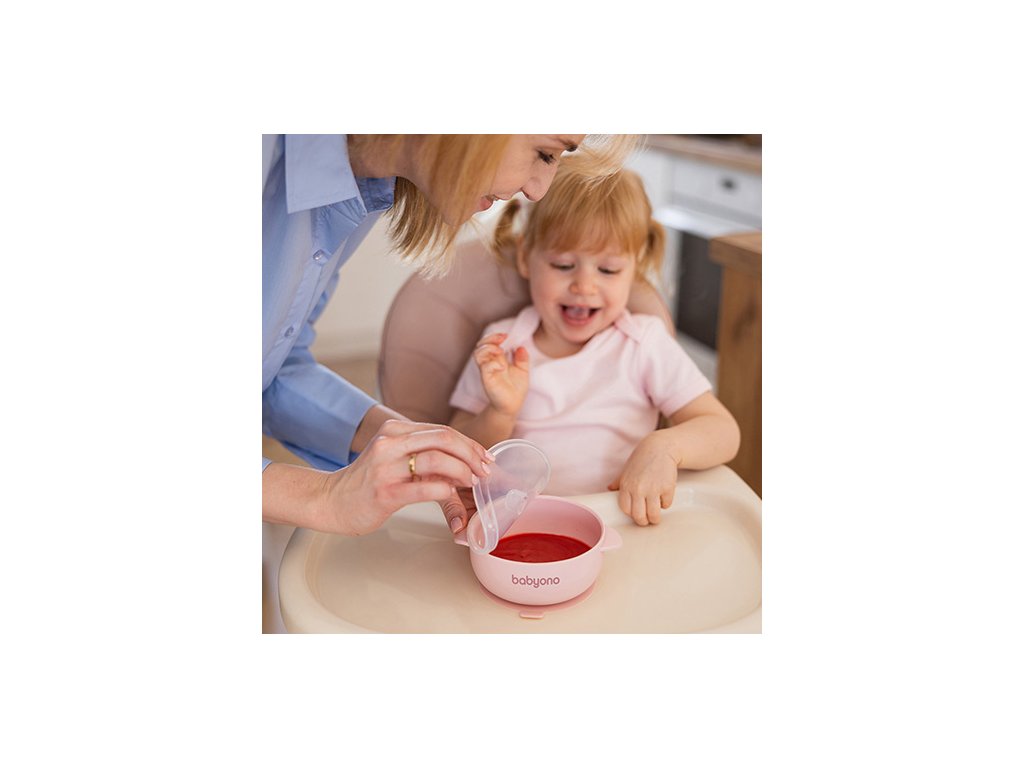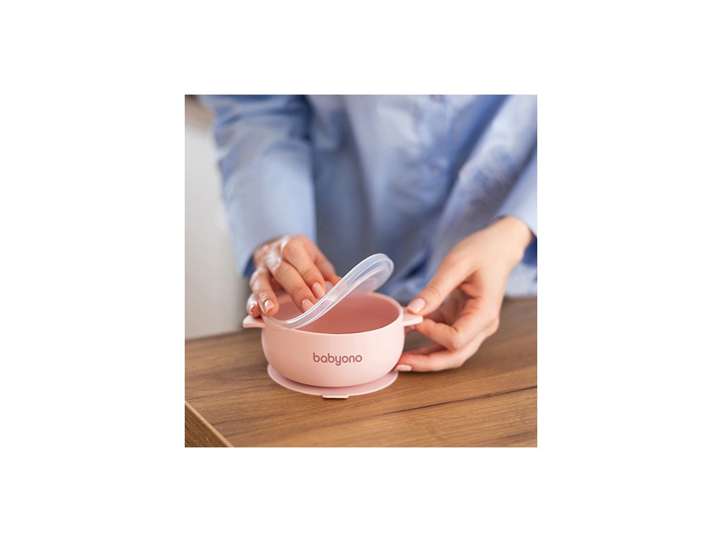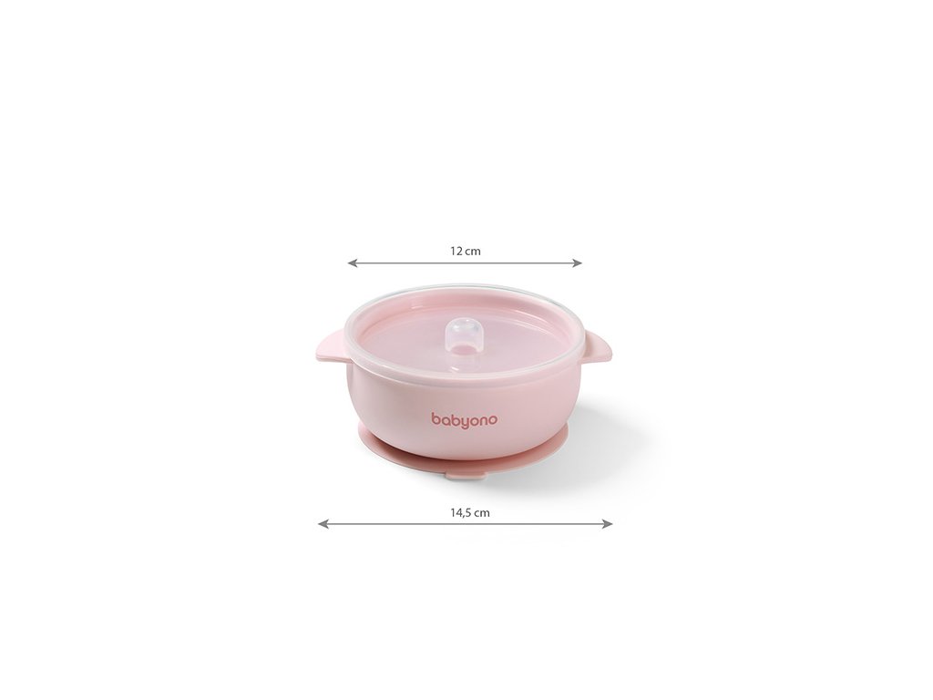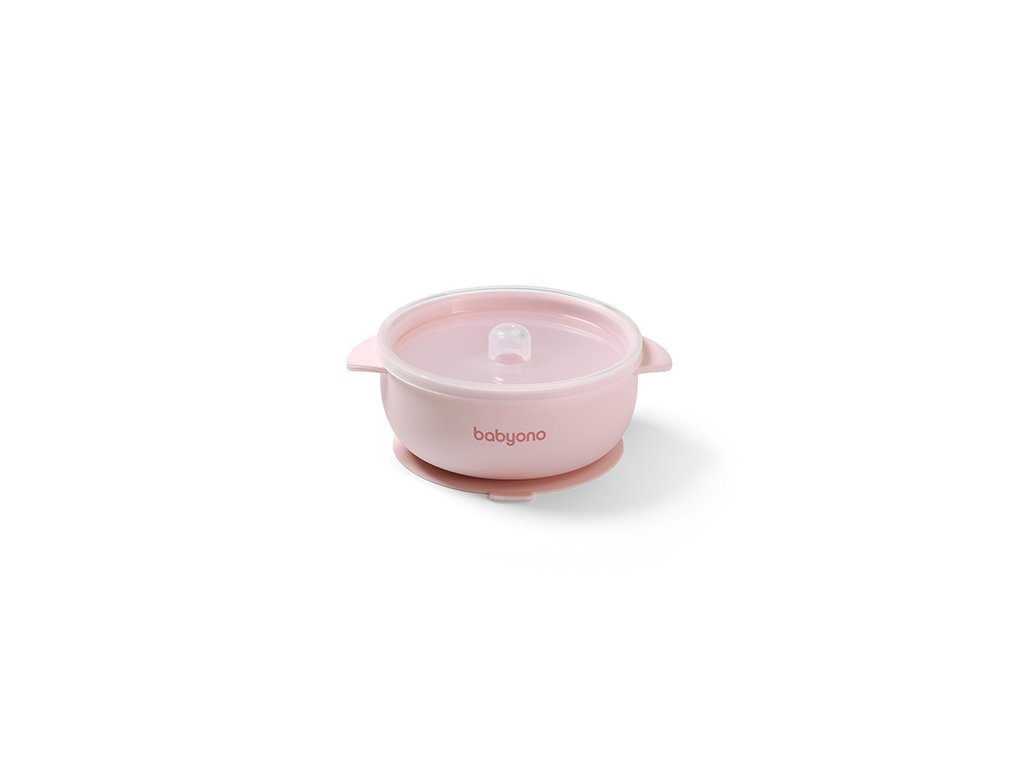 BABYONO Miska silikónová s prísavkou a viečkom ružová 6m+