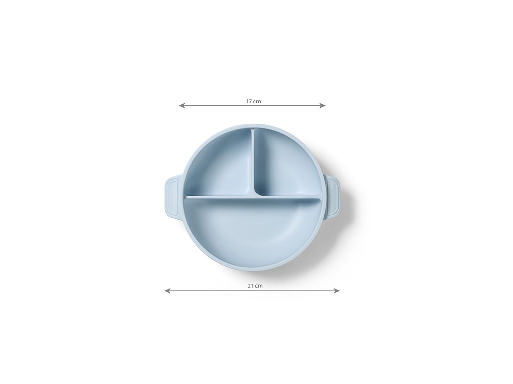 Zavádzate do jedálnička svojho bábätka tuhé jedlo alebo skúšate metódu BLW? Tento silikónový tanierik s tromi priehradkami vám to výrazne uľahčí. Umožní dieťaťu ochutnávať nové chute, podporuje samostatné kŕmenie a vďaka prísavke udrží tanier pevne na mieste – bez rizika prevrátenia. Viečko udrží jedlo teplé a čerstvé, takže môžete pripraviť jedlo vopred alebo uschovať zvyšky na neskôr. Tri samostatné priehradky umožňujú servírovať rôzne druhy jedál bez miešania chutí. Zaoblené okraje a vyššie steny uľahčujú naberanie jedla, či už rukou alebo príborom. Tanier aj viečko sú vyrobené z odolného, netoxického silikónu bez BPA, ktorý môžete používať v mikrovlnnej rúre aj umývačke riadu.