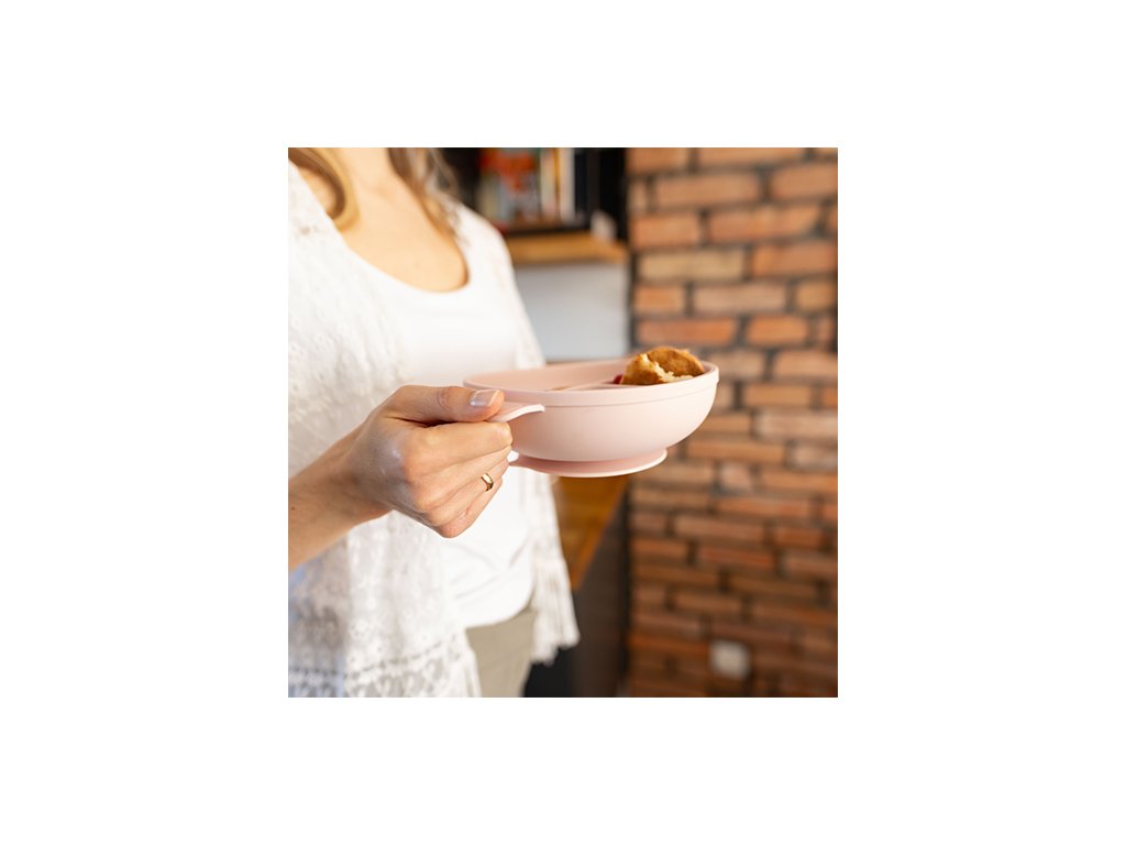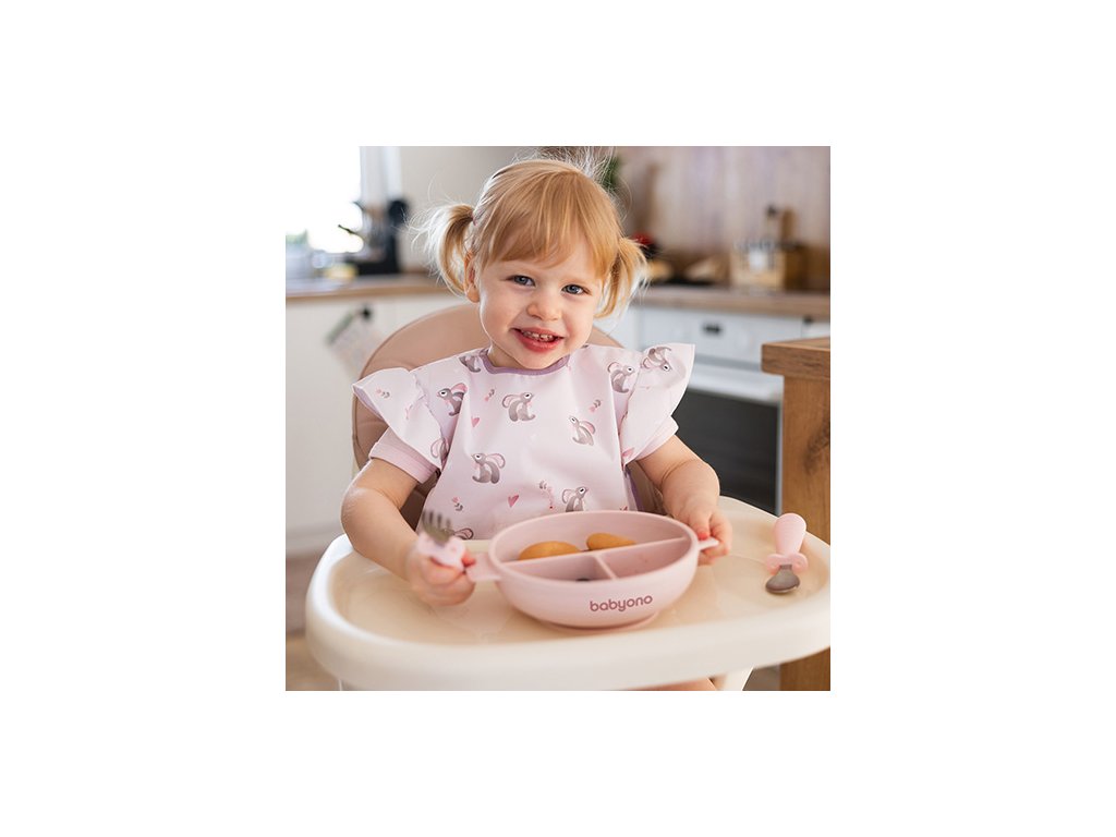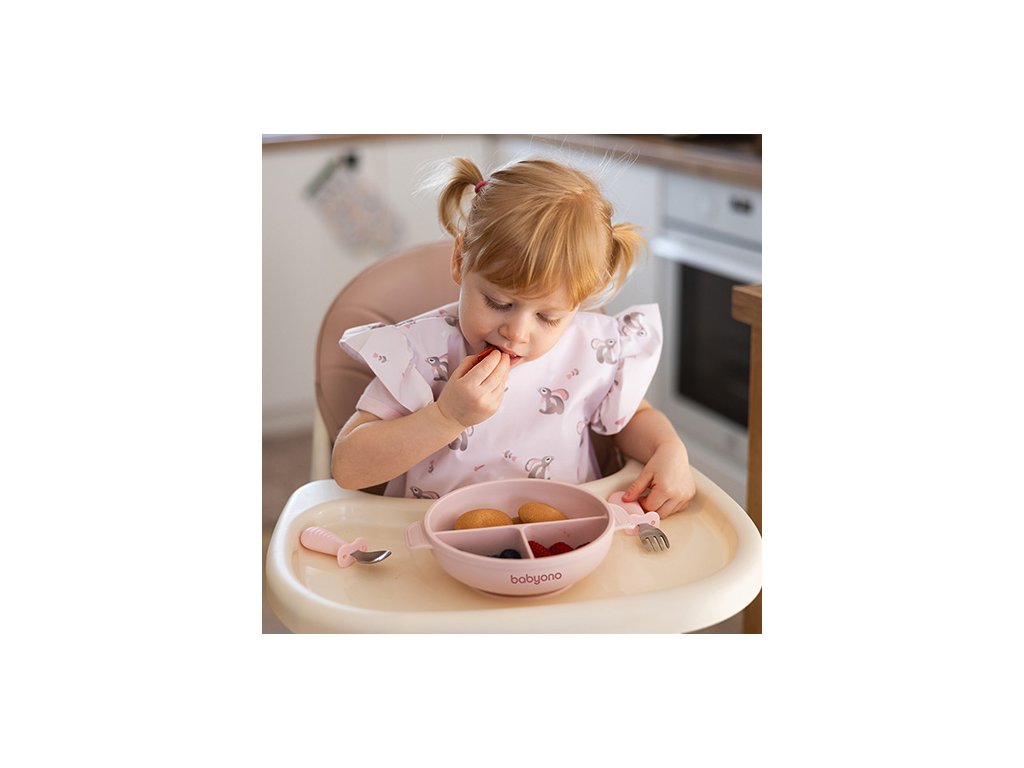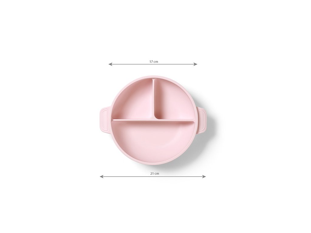 BABYONO Tanier silikónový s prísavkou a viečkom ružový 6m+