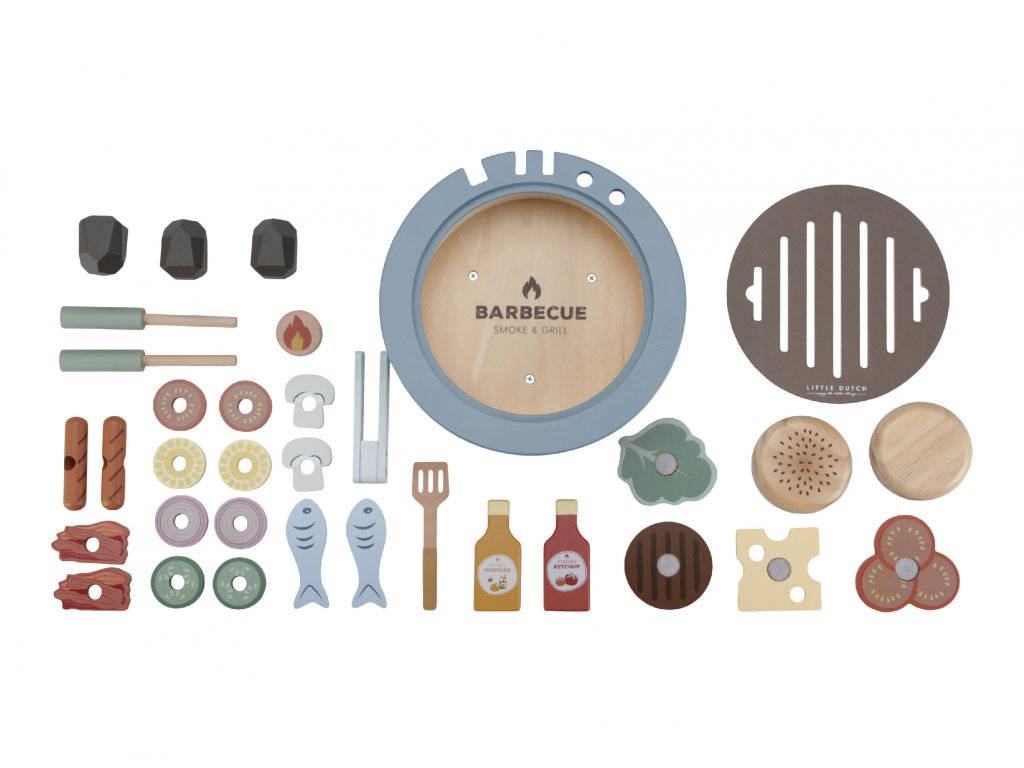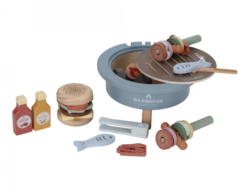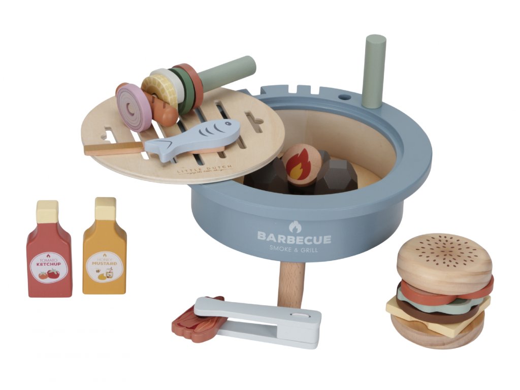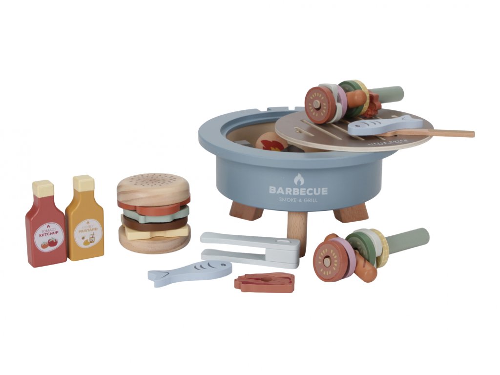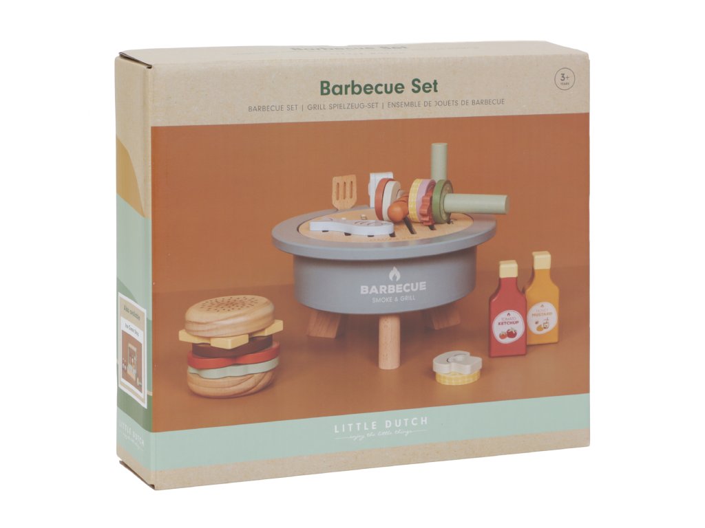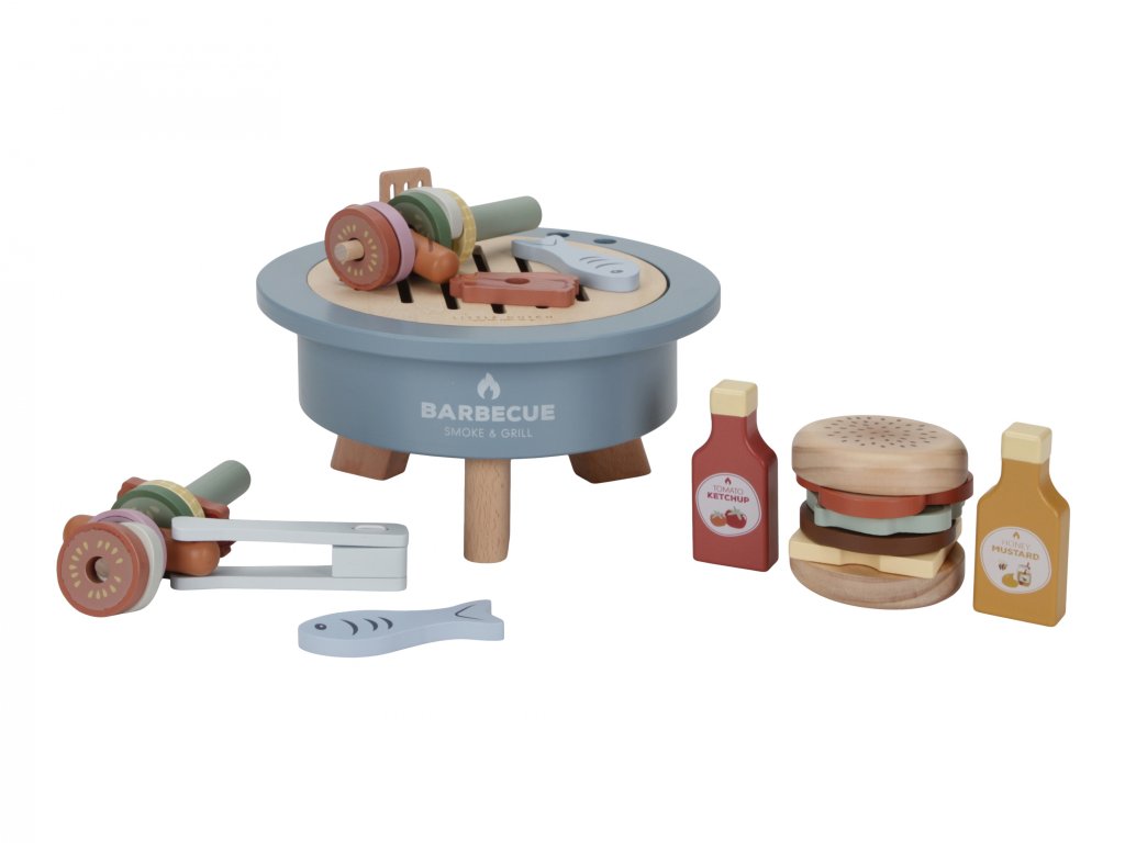 S touto bohato vybavenou sadou na grilovanie má váš malý kuchár či kuchárka po ruke všetko potrebné na prípravu letnej barbecue party. Dali by ste si zelenino-mäsový špíz, hamburger alebo grilovanú rybu? Než si vyberiete, na čo máte chuť, váš kuchár či kuchárka naplní gril dreveným uhlím, aby sa gril správne nahrial.