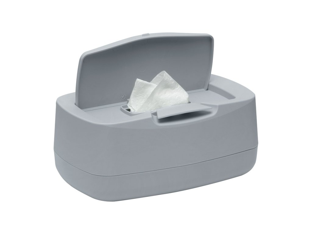 Univerzálny box na vlhčené obrúsky v modernom dizajne s ochranou proti vyschnutiu. Krásny doplnok na prebaľovaciu komodu. Je ľahko uzatvárateľný, aby sa predišlo vysychaniu obrúskov. Box je možné otvoriť jednou rukou. Špeciálne otváranie sa ďalej postará, že ďalší obrúsok budete môcť bez námahy vytiahnuť von a ihneď použiť.