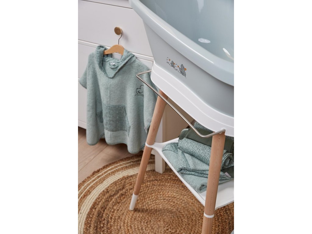 Detské pončo s kapucňou oceníte pred a po kúpaní alebo ak trávite s bábätkom čas pri bazéne. Vaše dieťa sa v ňom príjemne zahreje a vysuší, zároveň je vo froté pláštiku po celú dobu chránené pred slniečkom a pri pobyte pri mori tiež pred vetrom. Pončo je určené pre vekovú kategóriu 4 mesiace až 2 roky.