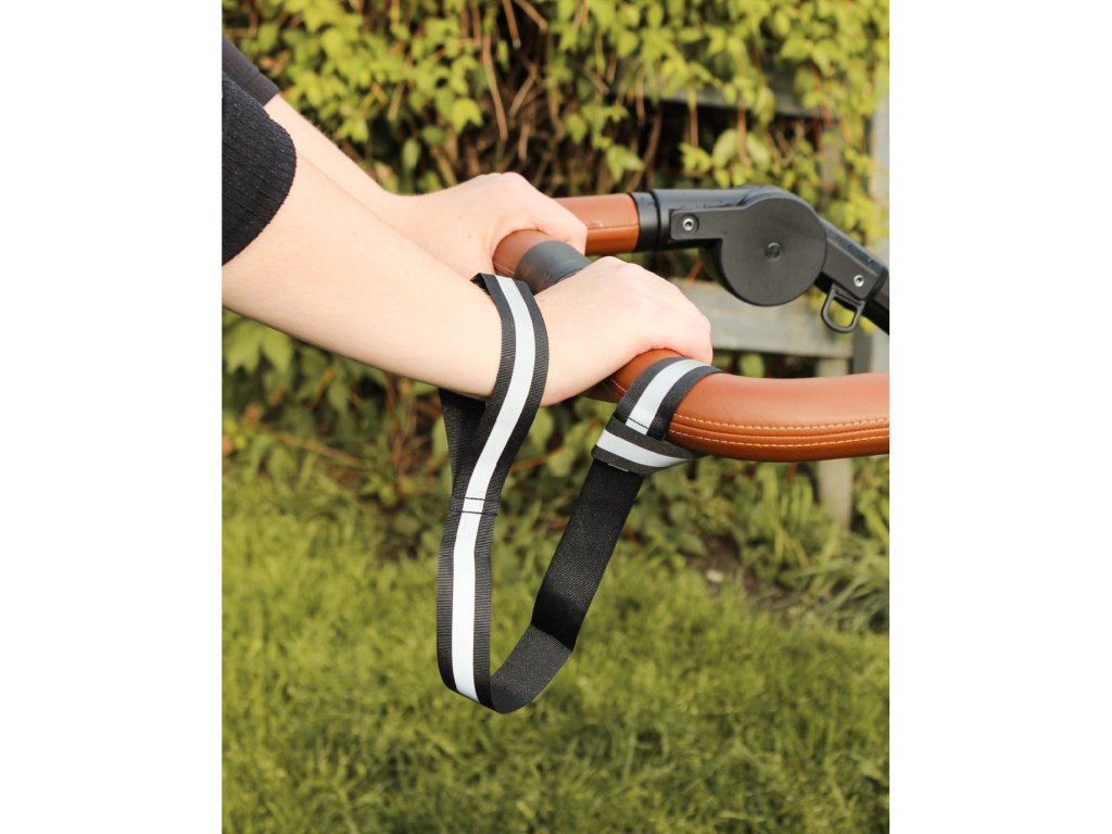 Popruh má navíc reflexní prvek, díky kterému budete lépe vidět za šera a ve tmě. Když ho zrovna nepoužíváte, může zůstat zavěšený na kočárku a je vždy připravený.