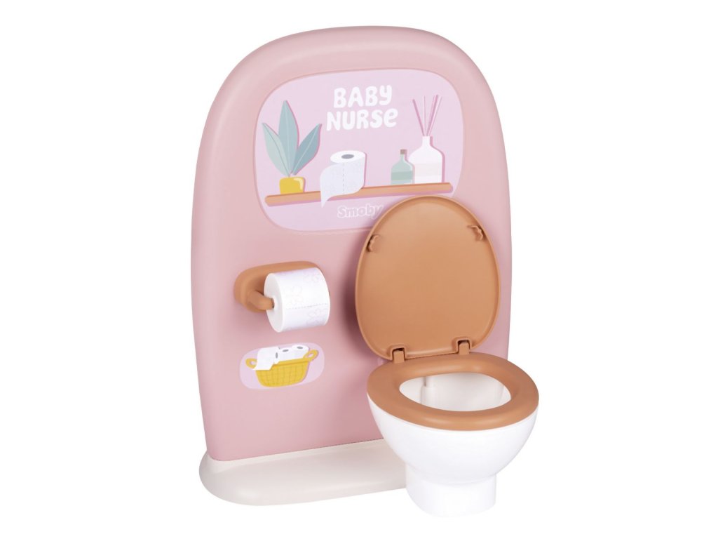 Kúpeľňa pre bábiky z radu Baby Nurse. Obsahuje toaletu, rolu toaletného papiera, umývadlo, zrkadlo, kefku na zuby a kelímok. Bábika nie je súčasťou balenia. Vhodné pre bábiky do 42 cm. Tento výrobok obsahuje minimálne 75 % recyklovaného materiálu. Rozmery rozbaleného výrobku (DxŠxV): 22 x 25 x 34 cm.
