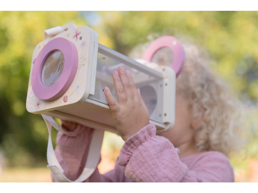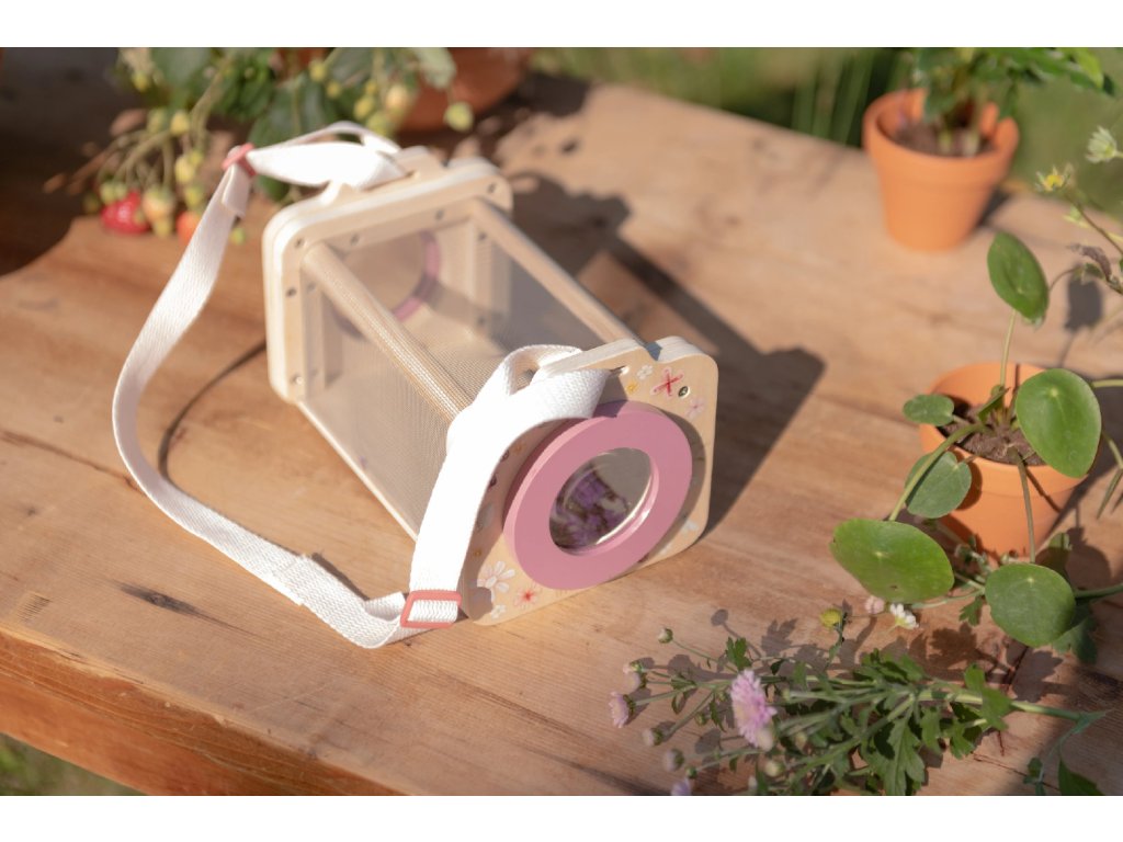 Unikátna pomôcka pre malých zvedavých prírodovedcov umožní deťom skúmať zblízka a bezpečne hmyz, ktorý žije na záhrade, na lúke alebo v lese. Veľká lupa slúži aj ako dvierka, ktorými sa hmyz dostane dovnútra boxu. Bočné steny sú zo sieťoviny, aby bol hmyz vo vnútri v bezpečí a mohol dýchať. Popruh umožňuje ľahké nosenie na krku s voľnými rukami. Po skončení pozorovania hmyz môžete bez problémov vypustiť späť do prírody, kam patrí!