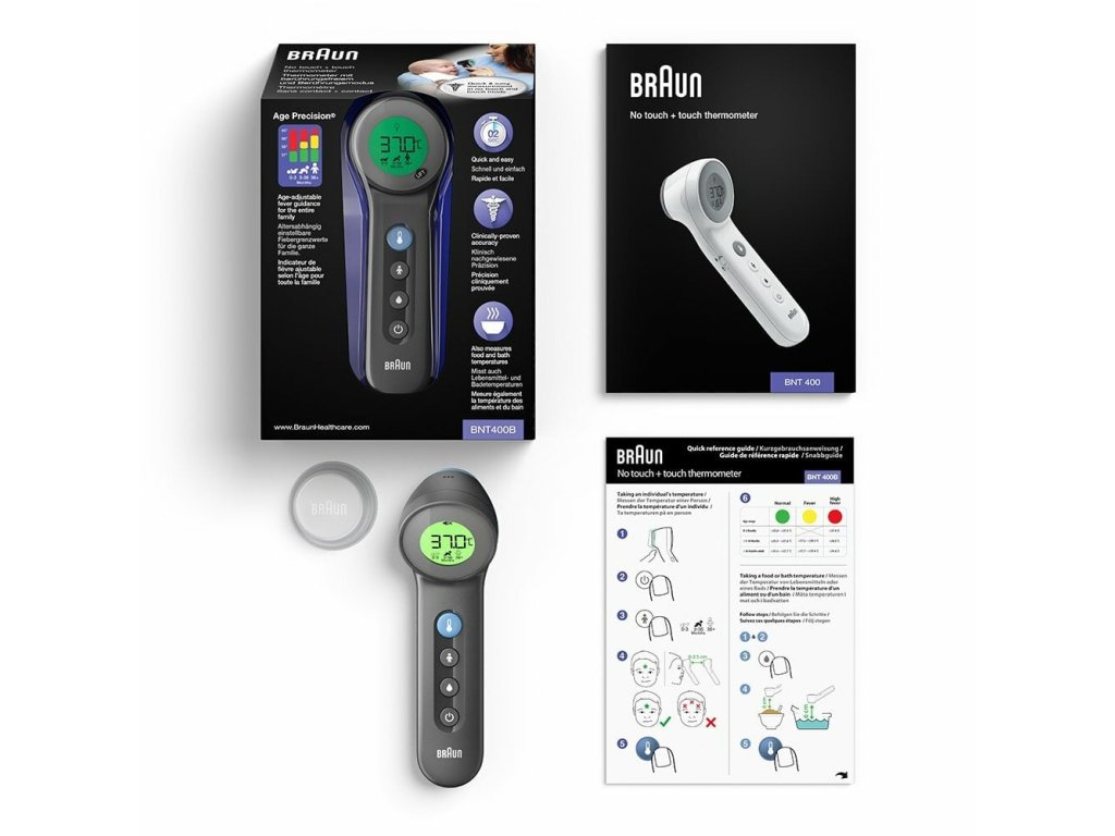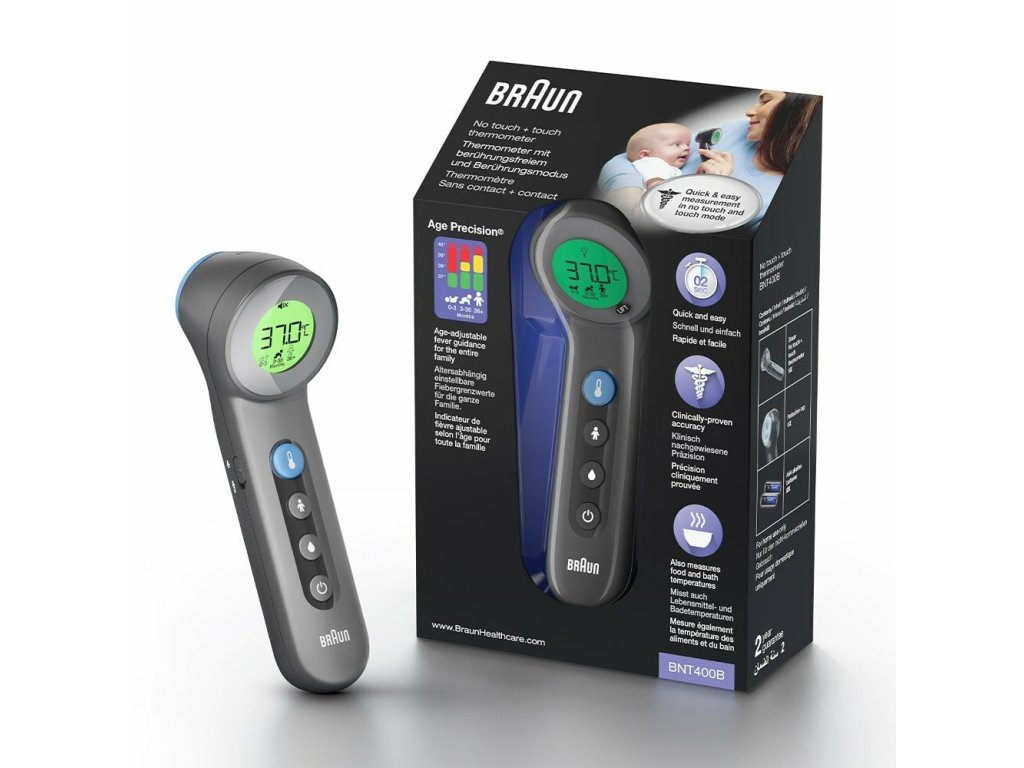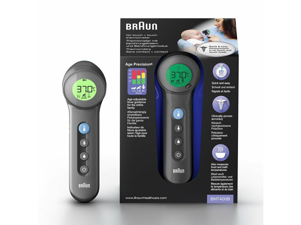 Teplomer určený pre tých najnáročnejších spotrebiteľov, ktorí nechcú nič na náhodu. BNT400 kombinuje jednoduché používanie dotykového aj hmatového merania s unikátnou technológiou Age of Precision® spoločnosti Braun, ktorá pomáha rodičom eliminovať pochybnosti pri meraní teploty.