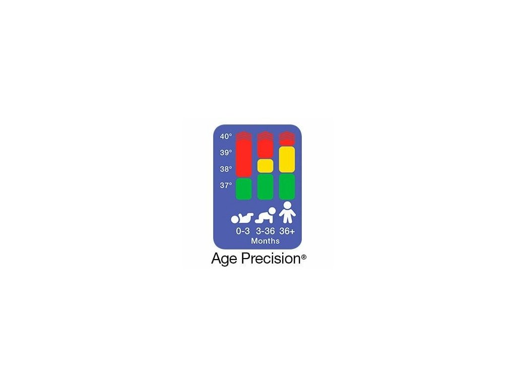 Funkcia Age Precision®s farebnou interpretáciou výsledkov na displeji. Definícia horúčky sa mení s vekom. Môžete nastaviť vek na určenie hodnôt teploty pre celú rodinu. Rodičia už nemusia hádať, aká teplota je v norme a kedy začína choroba. Obrazovka svieti zelenou farbou - keď je teplota normálna, žltá - keď je teplota zvýšená, červená - keď je horúčka. Tichý režim pre meranie nočnej teploty a osvetlenie nočného zobrazenia sú užitočné pri kontrole teploty, keď nechcete zobudiť dieťa.