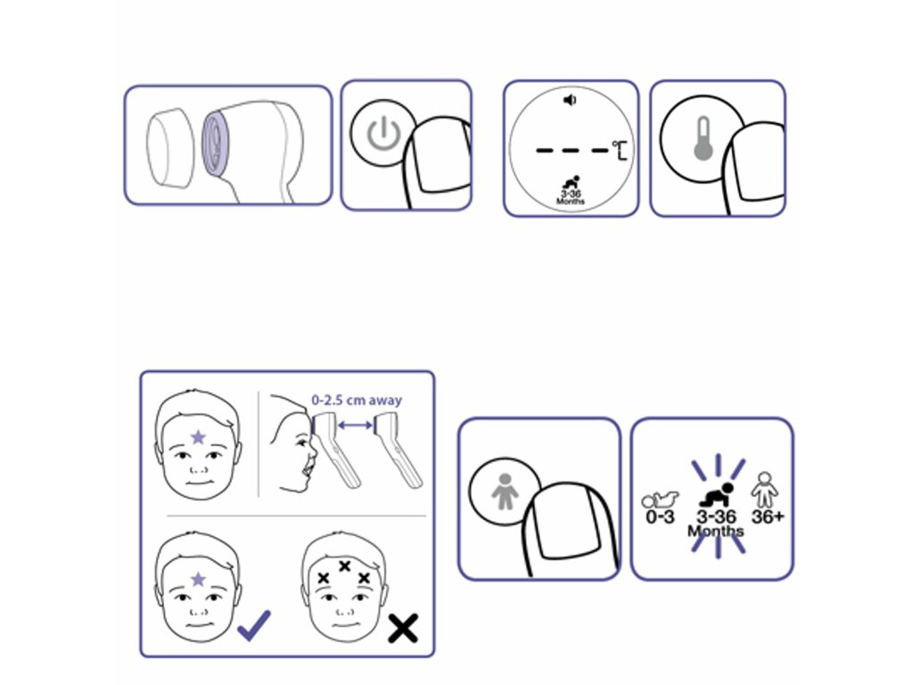Bezkontaktný režim: neinvazívne a pohodlné - až 2,5 cm od čela.
