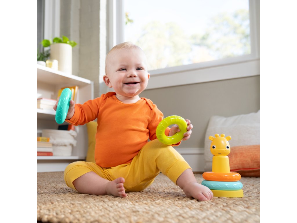 Objavte nové výšky hravosti so stohovacou žirafou od Bright Starts – zábavnou a rozkošnou vežou s krúžkami, ktorú si vaše dieťatko zamiluje! Ľahké, farebné krúžky sa ukladajú jeden na druhý smerom k usmiatej tvári žirafy, čím podporujú rozvoj jemnej motoriky a koordinácie ruka-oko. Každý krúžok má iný povrch a farbu, čo stimuluje zmysly a pomáha deťom objavovať nové textúry a farebné kombinácie. Táto interaktívna hračka podporuje kognitívny vývoj – dieťa sa učí, ako do seba jednotlivé časti zapadajú a v akom poradí.