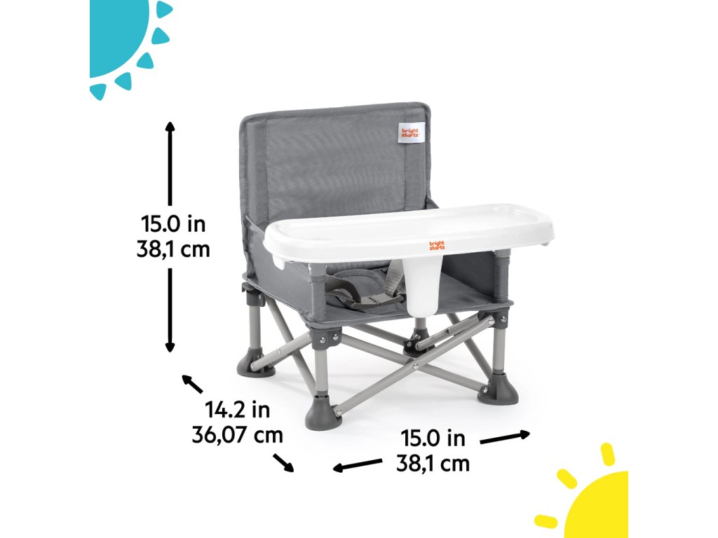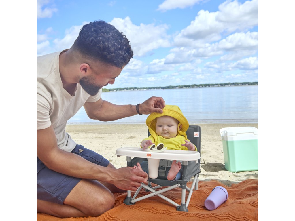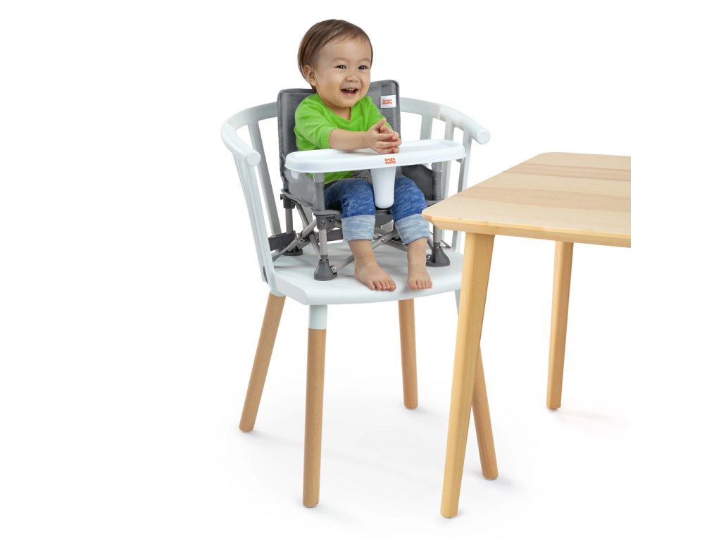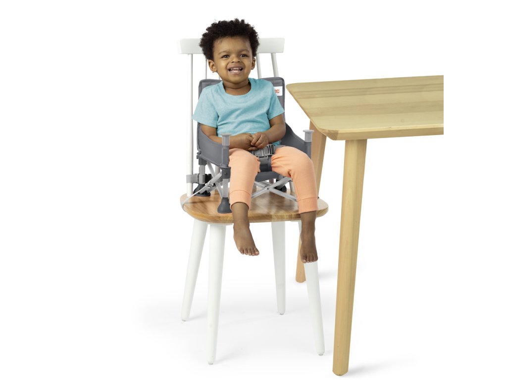 Od bábätka po batoľa, od jedenia po hranie – táto multifunkčná cestovná stolička poskytuje vášmu dieťaťu bezpečné miesto na sedenie. Táto jednička od výrobcu č. 1 v kategórii jedálenských stoličiek ponúka 3 režimy používania: podlahová stolička pre bábätká, jedálenská stolička s odnímateľným pultíkom a podsedák pre batoľatá. Pre najmenších ju môžete pripevniť na jedálenskú stoličku pre dospelých pomocou priložených popruhov a BPA free pultíka a vytvoriť tak prenosnú vysokú stoličku. Pre staršie deti je možné pultík odobrať a použiť stoličku ako podsedák pri stole. V podlahovom režime môžete Pop ‘N Sit využiť kedykoľvek potrebujete ďalšie sedadlo – na piknikoch, športových podujatiach alebo doma! Zadné vrecko slúži na uloženie každodenných nevyhnutností. Po použití sa jednoducho zloží do kompaktného rozmeru a uloží do prenosnej tašky s ramenným popruhom a ďalším vreckom. Pultík je vhodný do umývačky a poťah sedadla možno prať v práčke. Neutrálne sivé farebné prevedenie. Testované a schválené nezávislou certifikáciou.