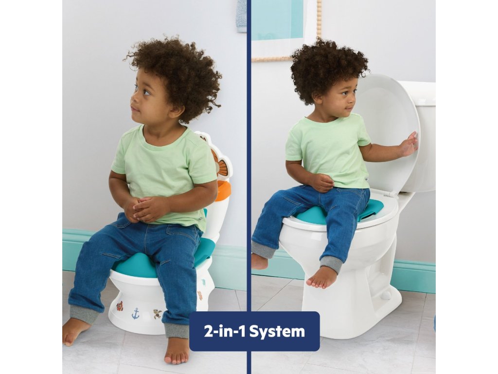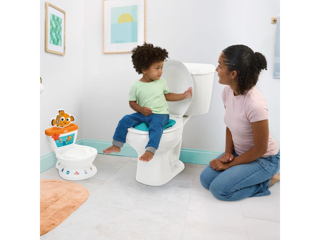 Zažite veselý začiatok cesty k samostatnosti s Disney Baby Finding Nemo My Size Potty by Bright Starts – nočníkom, ktorý zaujme každé dieťatko obľúbenou postavičkou klauna Nema! Tento 2v1 nočníkový systém rastie spolu s vaším dieťaťom – začína ako klasický detský nočník a neskôr sa jednoducho premení na redukciu pre toaletu pre dospelých.