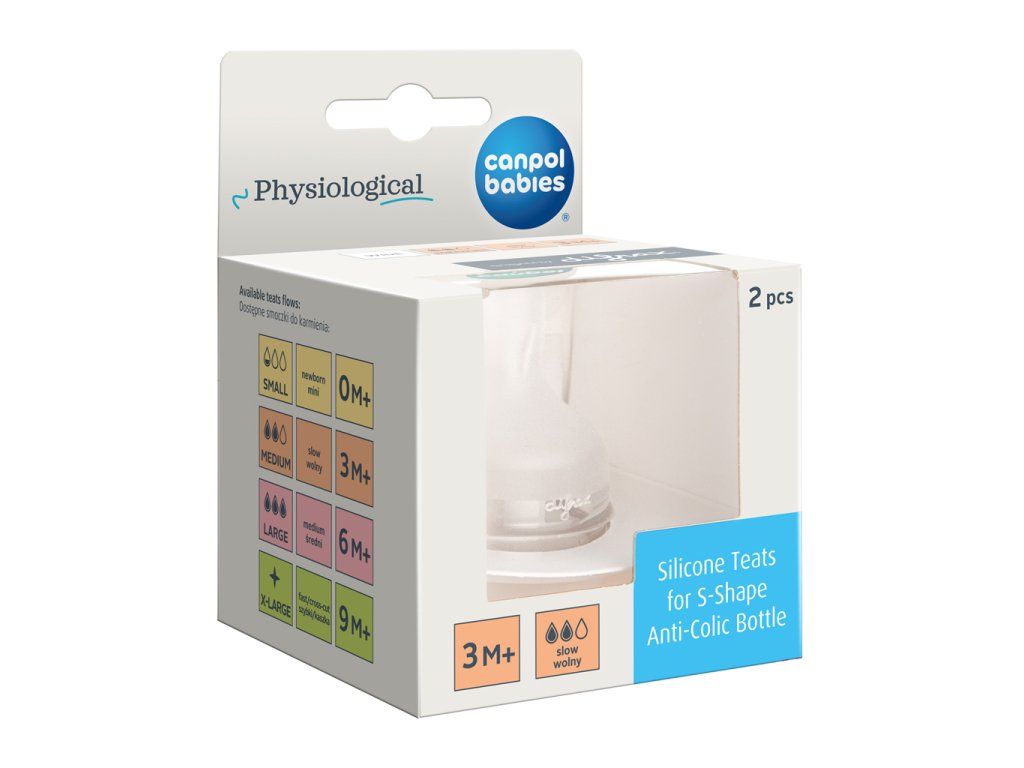 Fyziologický silikónový cumlík na fľašu S-Shape mini je mäkký a pripomína tvar matkinho prsníka, takže je ľahké kombinovať dojčenie a kŕmenie z fľaše. Vyrobené z hypoalergénneho matného silikónu bez zápachu - ľahké prijatie dieťaťom. Výstupky vo vnútri cumlíka zabraňujú zlepeniu a zničenou pri pití.