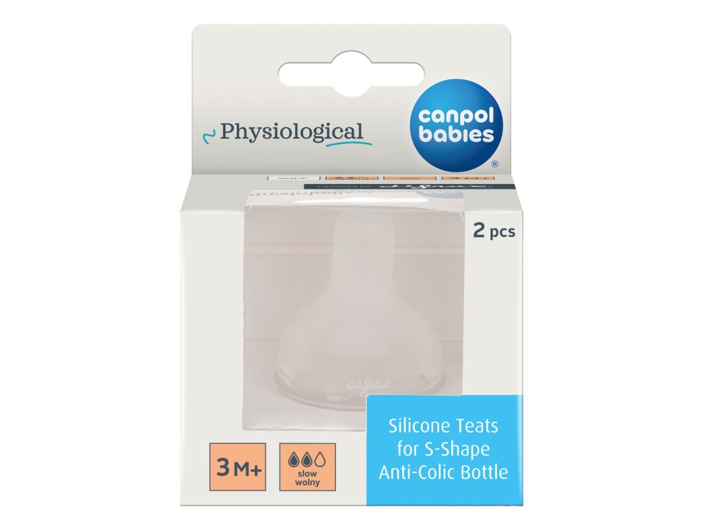CANPOL BABIES Cumlík silikónový na fľašu S-Shape pomalý 3m+, 2ks