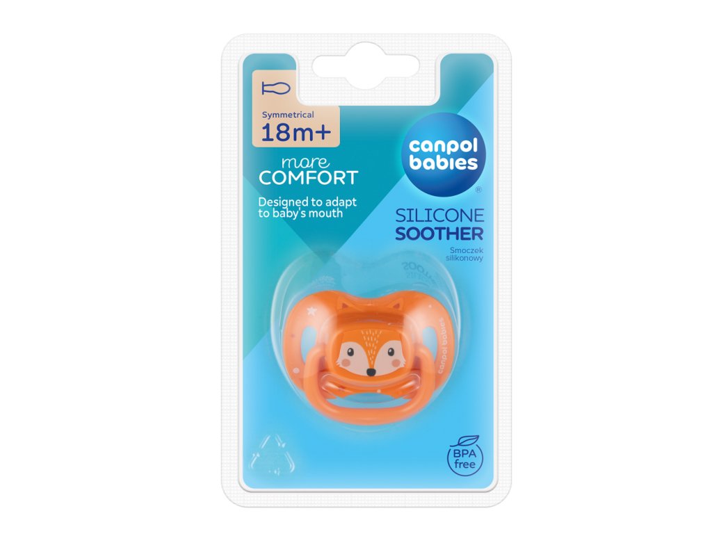 CANPOL BABIES Cumlík silikónový symetrický Cute animals 18m+ 1ks oranžový
