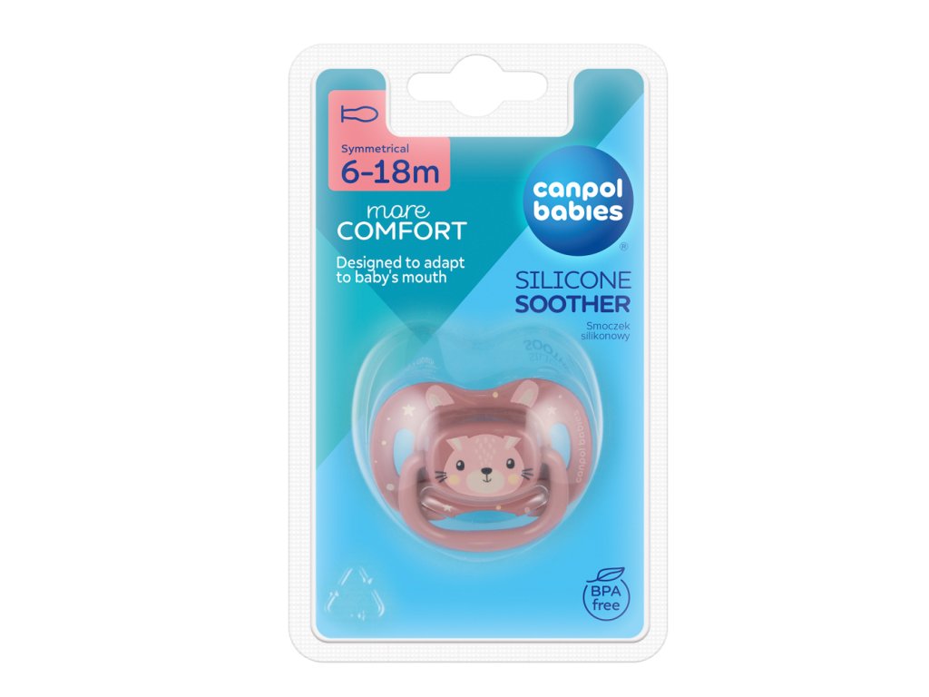 CANPOL BABIES Cumlík silikónový symetrický Cute animals 6-18m 1ks ružový