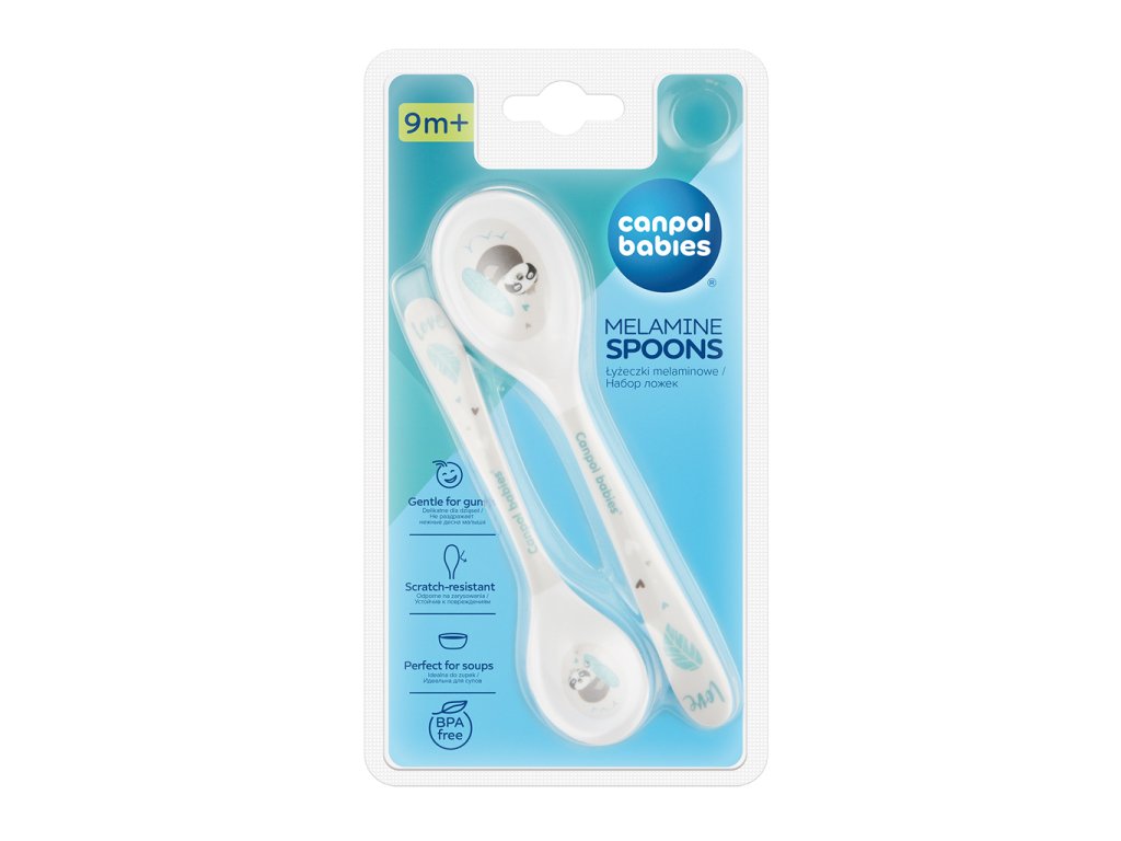 Lyžice na kŕmenie z melamínu odolného voči poškriabaniu.