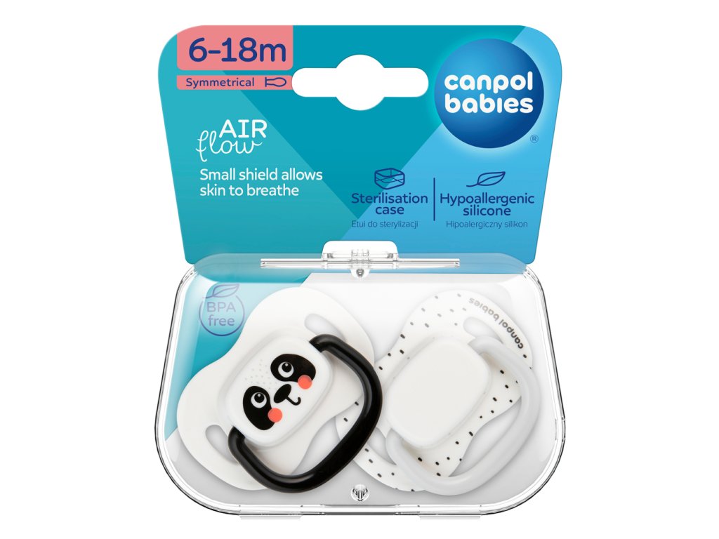 - Canpol babies symetrický cumlík BabiesBoo je k dispozícii v dvoch jedinečných dizajnoch a rôznych veľkostiach - rastie s vašim dieťaťom.