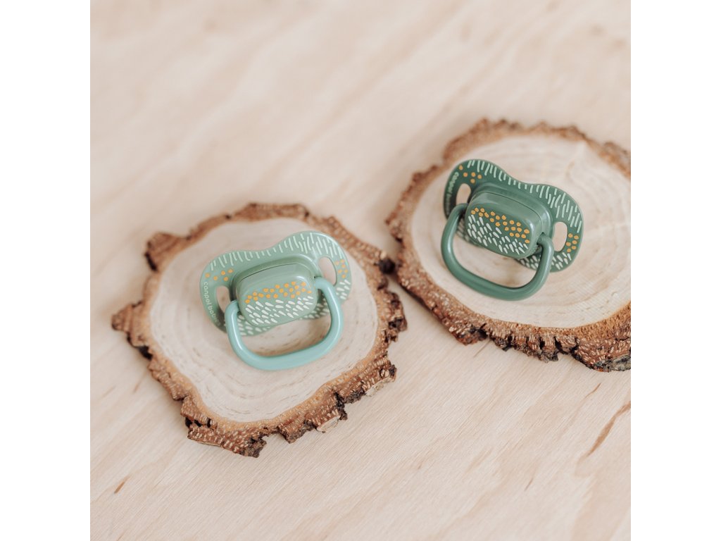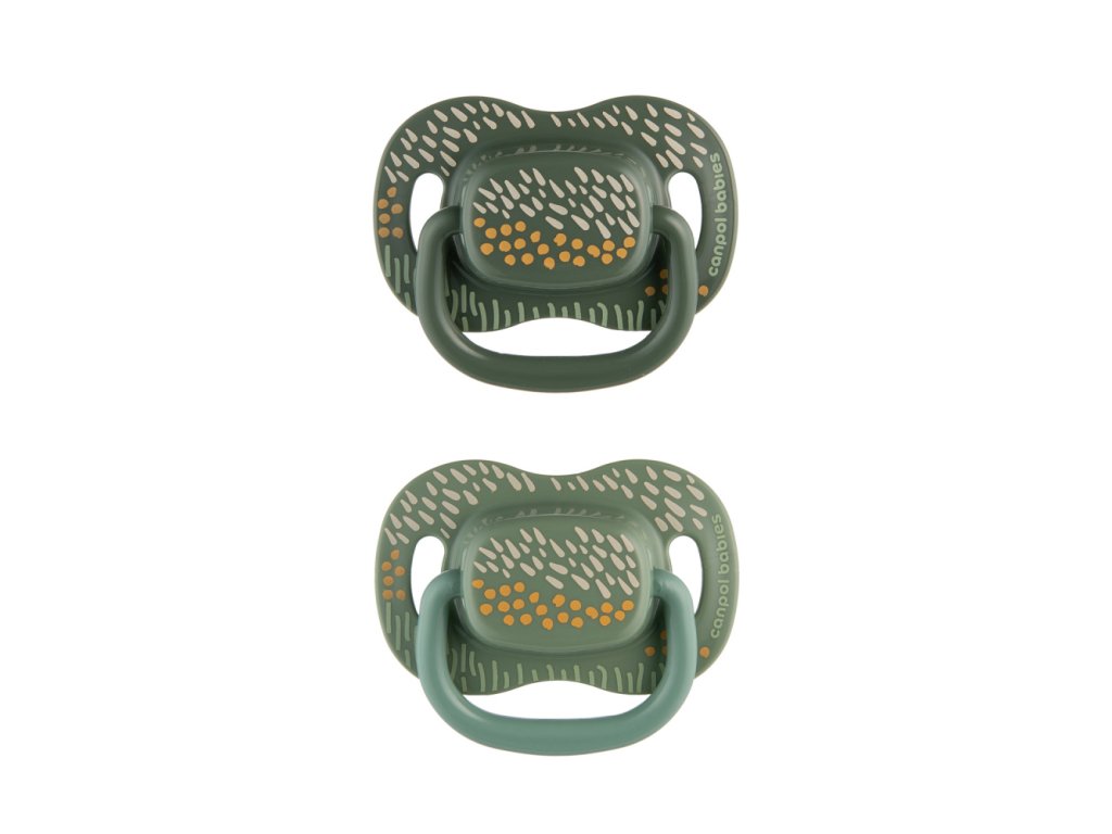 CANPOL BABIES Set symetrických silikónových cumlíkov Mountains 18+ 2ks zelený