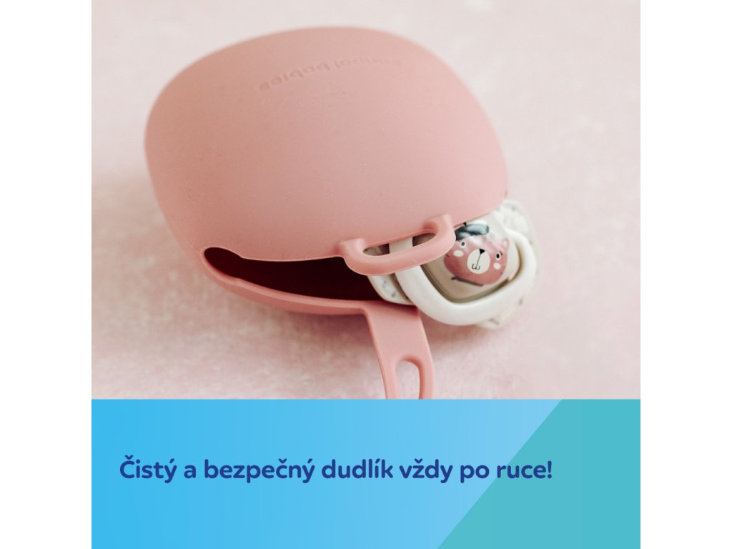 Silikónové puzdro na cumlík ochráni obľúbený cumlík vášho bábätka na prechádzkach, cestovaní aj doma. Krásne a praktické silikónové puzdro na cumlík pojme dva cumlíky štandardnej veľkosti, ktoré budú vždy čisté a pripravené na použitie. Puzdro má kompaktný tvar a pohodlnú praktickú rukoväť, pomocou ktorej ho možno ľahko pripevniť na kočík, postieľku alebo tašku, aby boli cumlíky vždy po ruke. Puzdro na cumlík Canpol babies je vyrobené z pružného a mäkkého silikónu, vďaka ktorému sa pohodlne používa a ľahko sa čistí. Minimalistický dizajn sa hodí do kabelky každej mamičky.