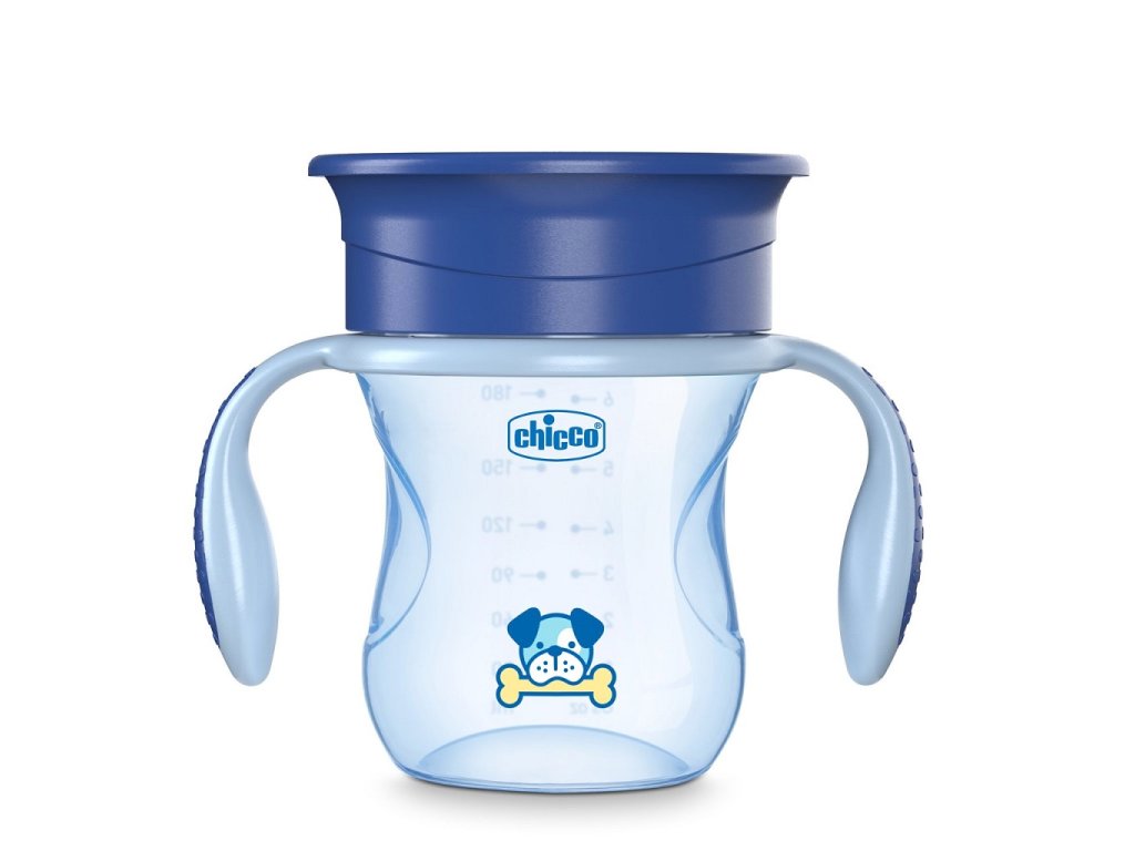 CHICCO Hrnček Perfect 360 s držadlami 200 ml modrý 12m+