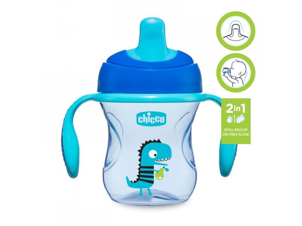 Hrnček Chicco Trénujeme je ideálny na prechod od fľaše k prvému hrnčeku a samostatnému pitiu.
