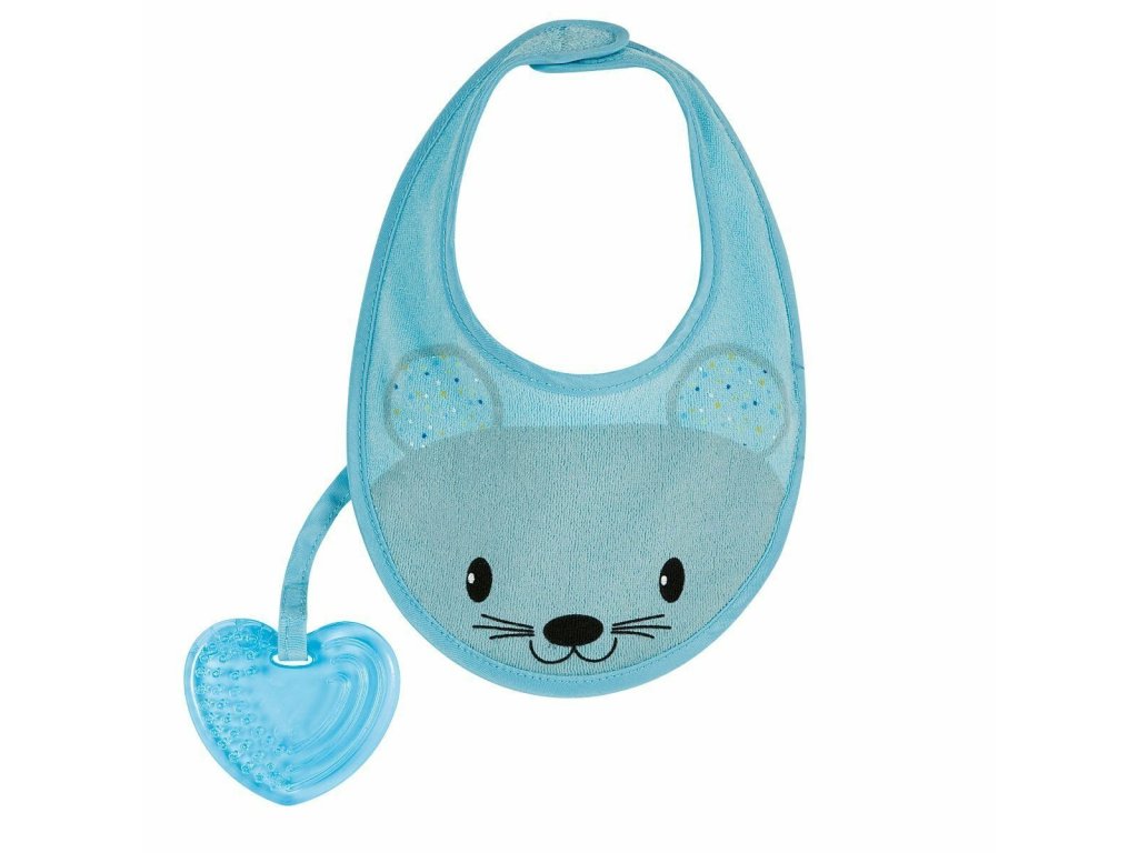 -Bavlnený podbradník chráni detské oblečenie pred navlhčením a hryzátko poskytuje úľavu pre podráždené ďasná, keď sa derú prvé zúbky.