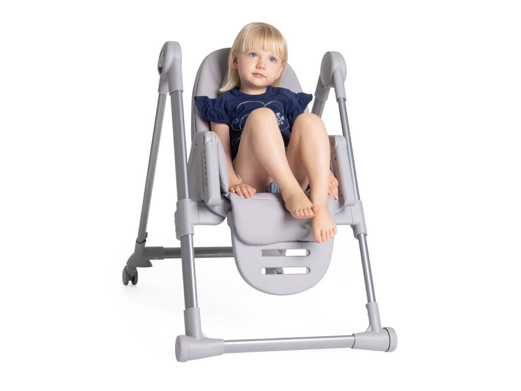 Jedálenská stolička sa dá výškovo nastaviť do 9 rôznych pozícii a prispôsobí sa tak výške, ktorú aktuálne potrebujete. Má 4 kolieska vďaka ktorým viete stoličku prakticky presúvať. Opierka chrbta sa dá nastaviť do úplného ľahu. Opierka nožičiek je rovnako nastaviteľná pre úplný komfort dieťaťa.