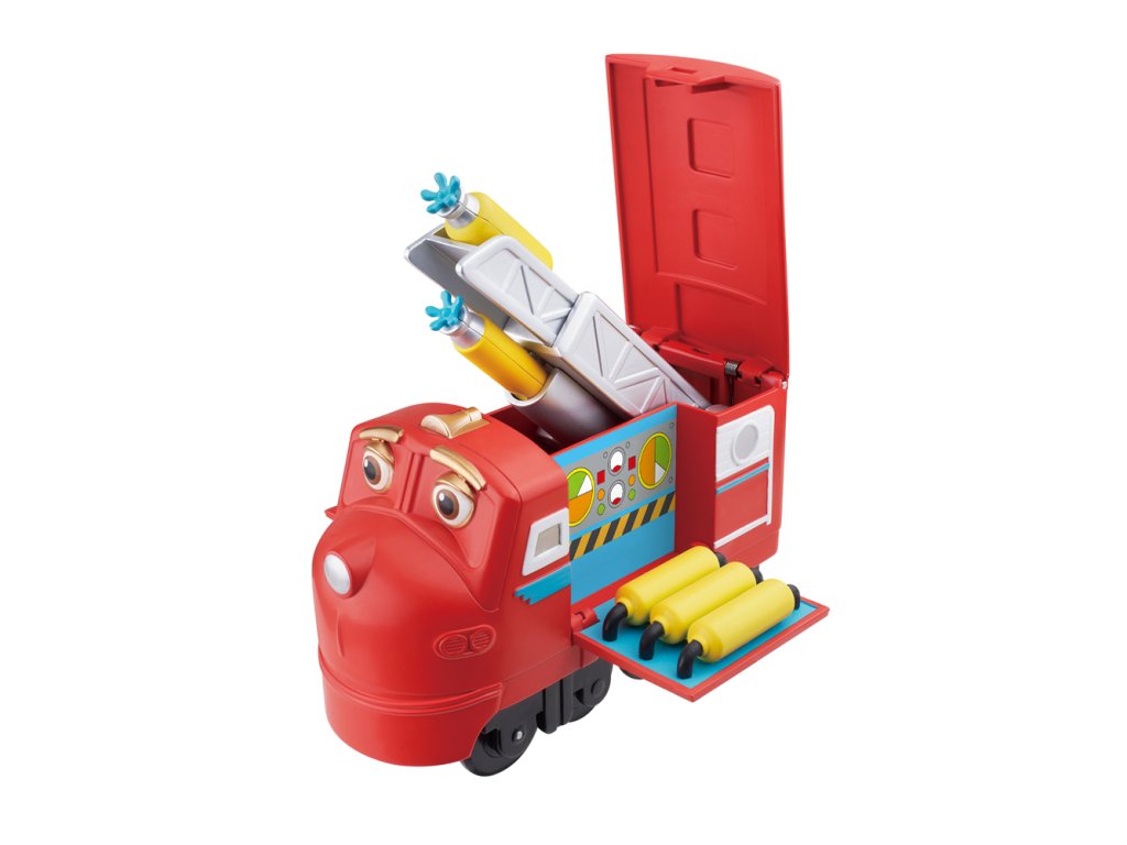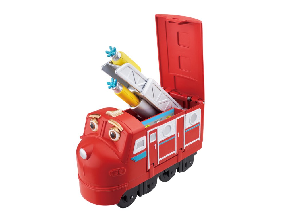 Lokomotíva s transformačnou funkciou. Po stlačení vrchnej časti lokomotívy sa autoamticky vysunú rôzne pracovné pomôcky. Bočné panely sa dajú roztiahnuť ručne a odhaliť ďaľšie funkcie.