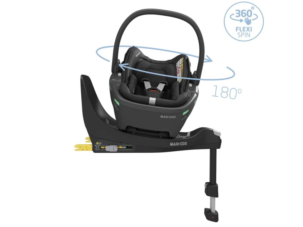 Autosedačka je kompatibilná s otočnou základňou Maxi-Cosi FamilyFix 360. Otočná základňa Maxi-Cosi FamilyFix 360 poskytuje najbezpečnejší spôsob upevnenia autosedačky do auta a zároveň maximálne zjednodušuje rodičom usadenie dieťaťa vďaka možnosti otočiť autosedačku jednou rukou smerom k sebe. Vďaka technológii FlexiSpin je možné autosedačku otáčať o 360 ° v akejkoľvek jej polohe. Základňa sa pripevňuje do auta pomocou úchytov ISOFIX. Autosedačka sa na základňu pripevní ľahko a rýchlo prostredníctvom technológie Click-and-Go. Vizuálny a zvukový indikátor (zacvaknutie) na základni minimalizuje pravdepodobnosť nesprávneho pripevnenie autosedačky. Ergonomické uvoľňovacie tlačidlo umožňuje jednoduché odpojenie autosedačky.