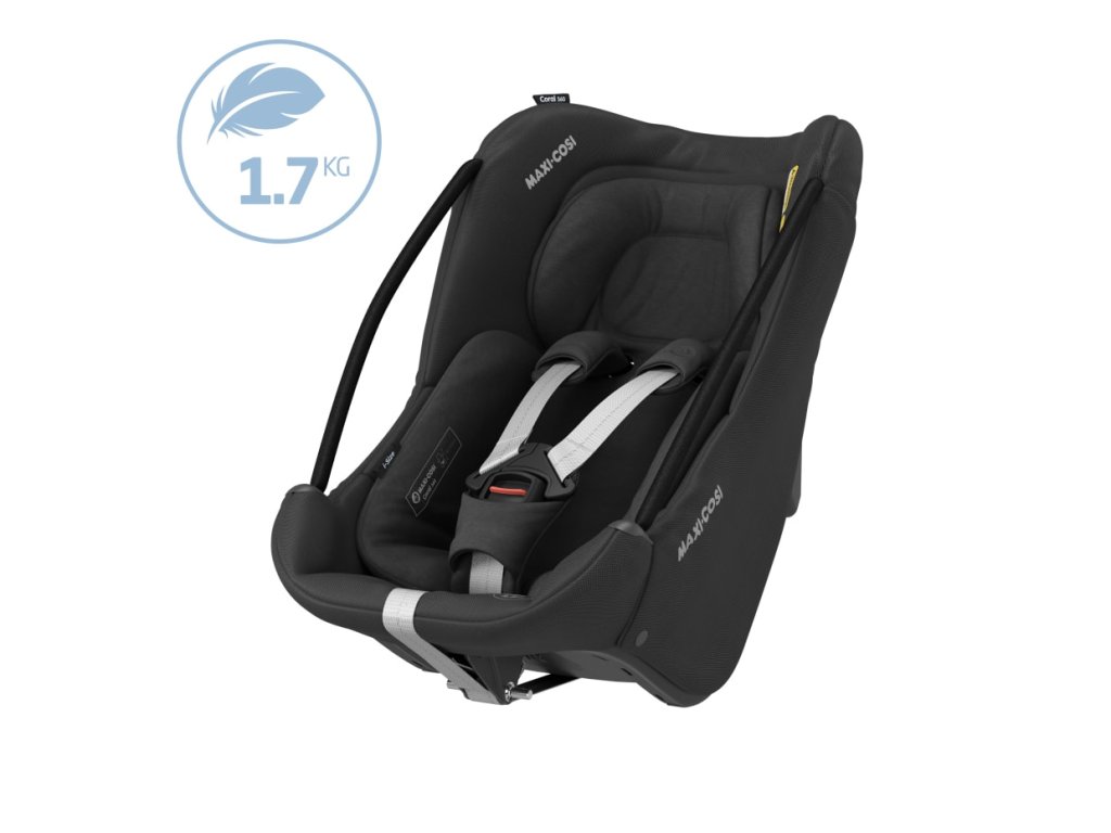 - jednoduché prenášanie dieťaťa vďaka možnosti vybrať dieťa v mäkkom nosiči s hmotnosťou 1,7 kg