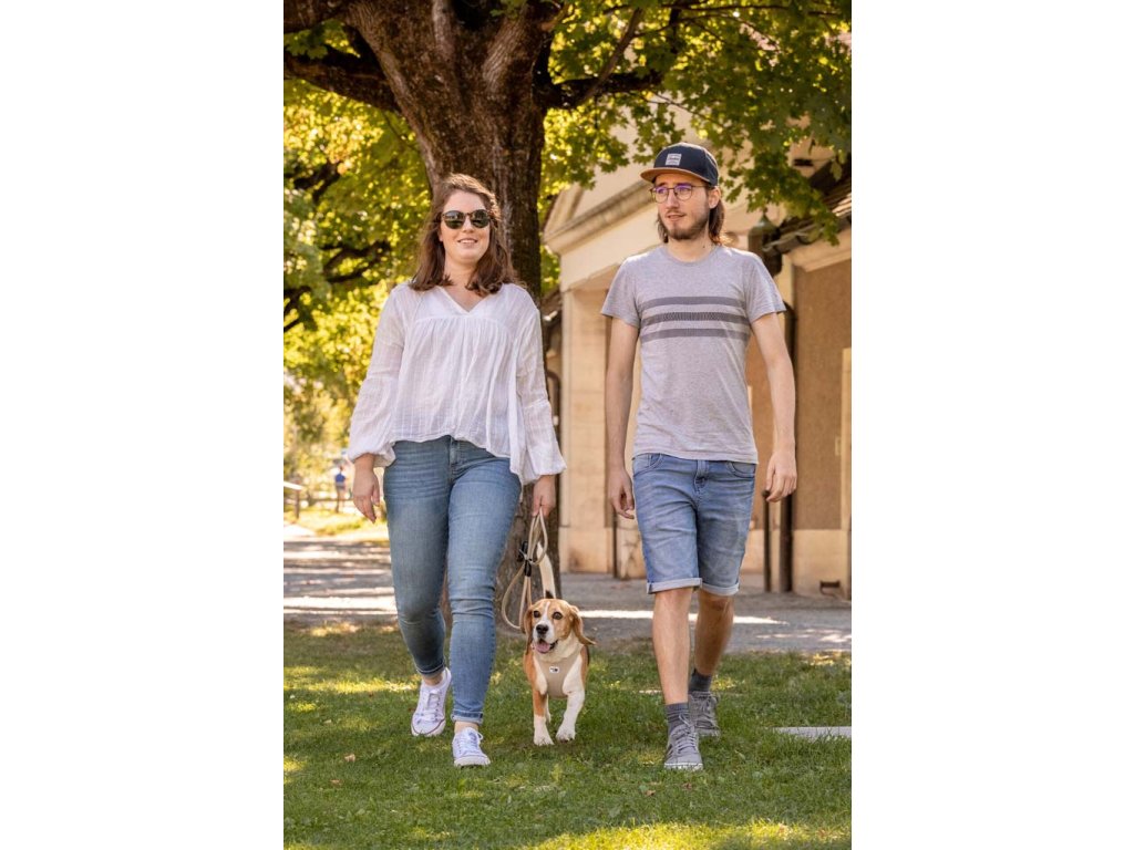 Ľahký, pohodlný postroj pre malých a stredne veľkých psov. Vodítko a postroj sa dajú pripnúť jednou rukou pomocou spony. Vysokopevný materiál spony, ktorý vydrží ťahové zaťaženie až do 100 kg. Táto spona eliminuje „cvakavý“ zvuk D-krúžkov. Výrazne zlepšená ergonómia postroju a optimalizované nosenie vďaka novému vzoru a novej veľkostnej stupnici.