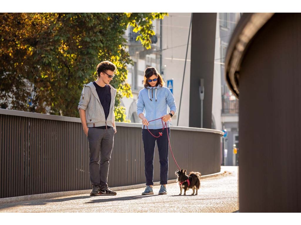 Ľahký, pohodlný postroj pre malých a stredne veľkých psov. Vodítko a postroj sa dajú pripnúť jednou rukou pomocou spony. Vysokopevný materiál spony, ktorý vydrží ťahové zaťaženie až do 100 kg. Táto spona eliminuje „cvakavý“ zvuk D-krúžkov. Výrazne zlepšená ergonómia postroju a optimalizované nosenie vďaka novému vzoru a novej veľkostnej stupnici.