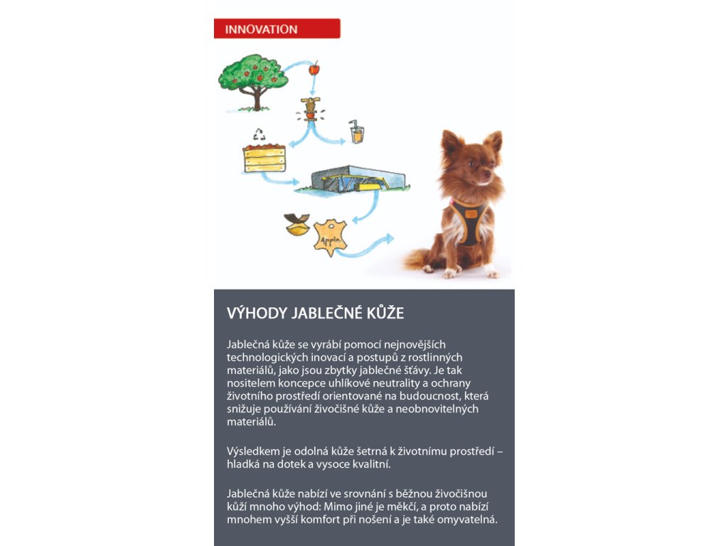 Dokonalá kombinácia elegantného koženého vzhľadu s najvyššou kvalitou: Prvý vegánsky postroj pre psov na svete vyrobený z jablčnej kože.
