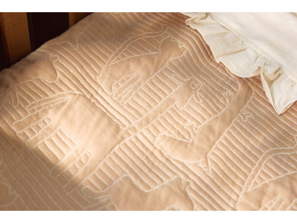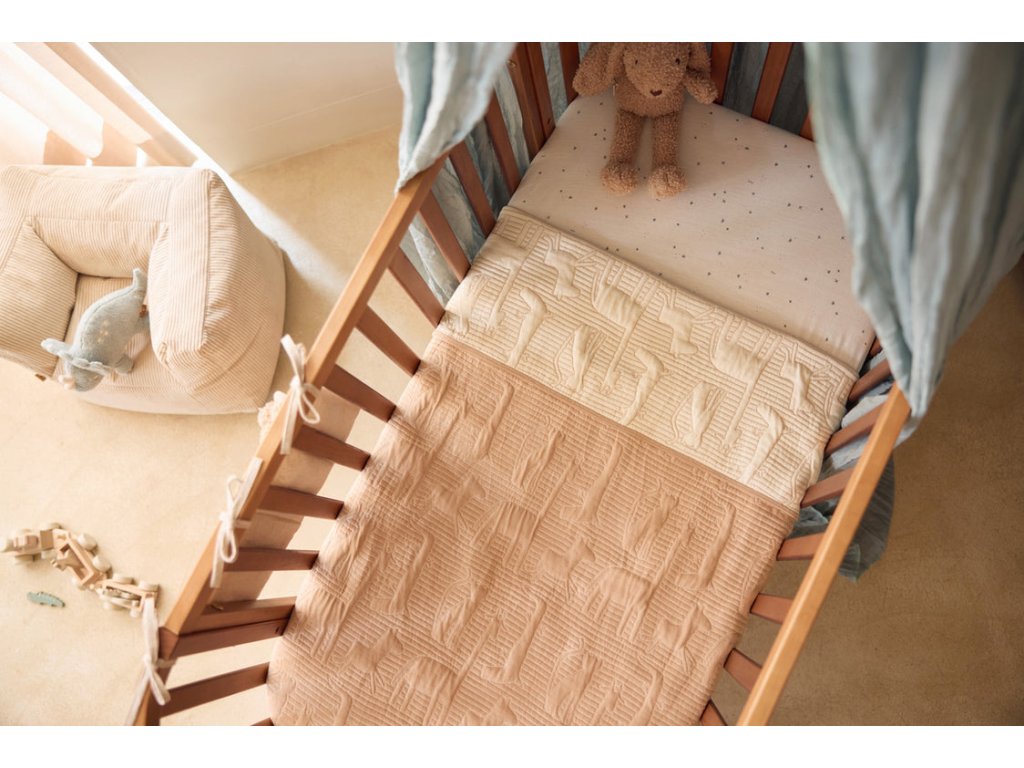 Obojstranná deka s originálnym prešívaným vzorom zvierat z džungle je ideálna na prikrytie bábätka v kočíku, kolíske či košíku.